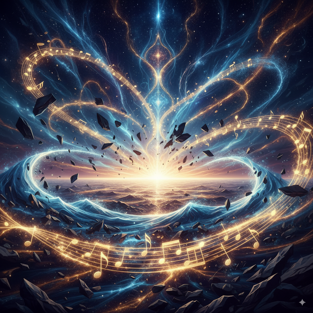 A piano and violin concerto sets a dramatic, melodic foundation as two female vocalists layer harmonies—one soaring, one deep—creating intricate interplay, Intense crescendos are driven by super aggressive, powerful kick drums, while synthesizer textures snake through, amplifying instrumental harmonies, The sound is grand, intense, and profoundly melodic, with each section building urgency and emotional depth