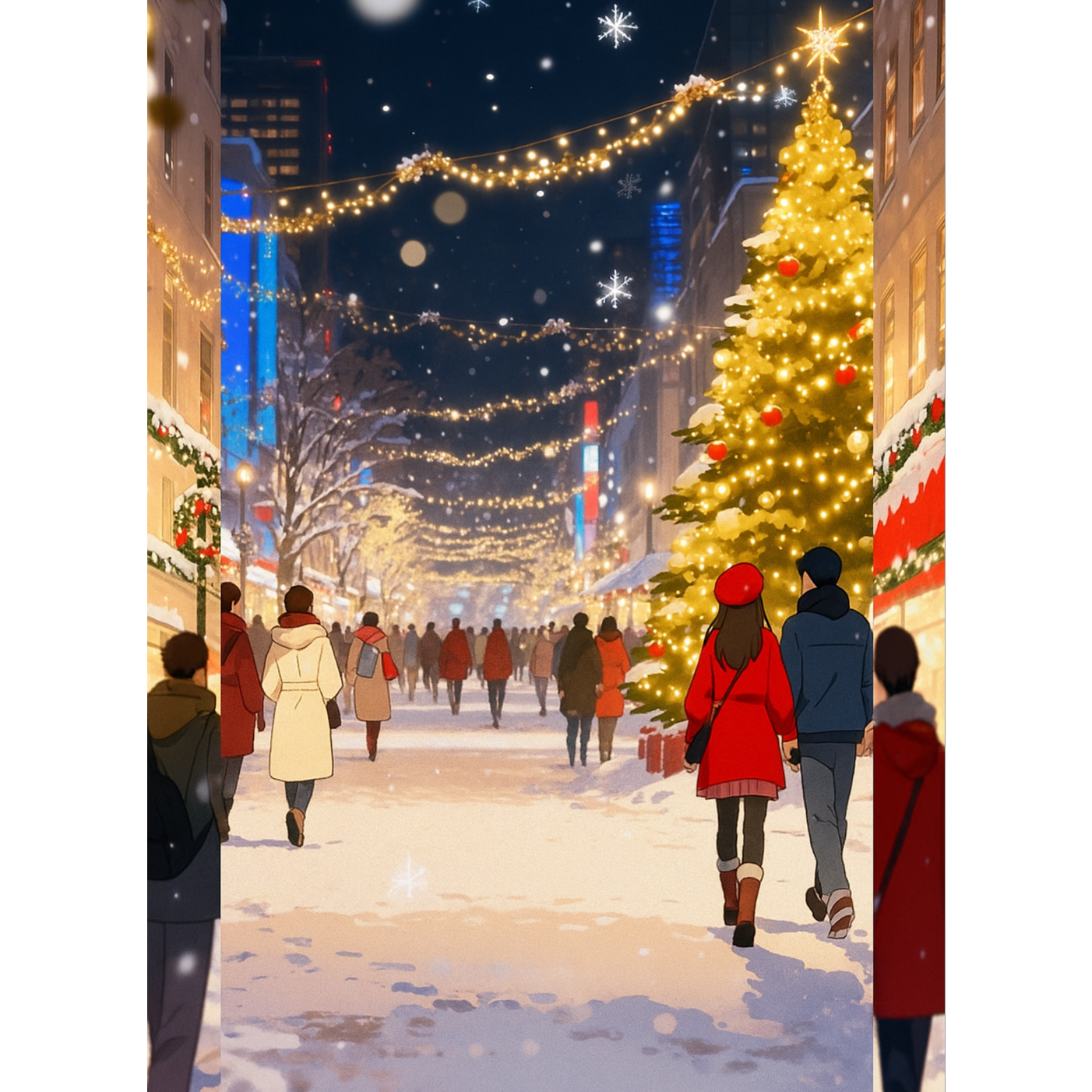 Create a super Christmas song that starts with a captivating intro featuring beautiful harmonies and layering by two female vocalists, and continues with a melodic, pop feel throughout, The intro begins quietly and builds to a grand finale, The song should convey the feelings of "snow, love, light, warmth, and miracles" throughout, Mood: Happiness, emotion, warmth, and Christmas magic, Instruments: