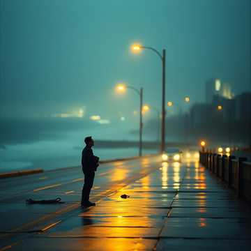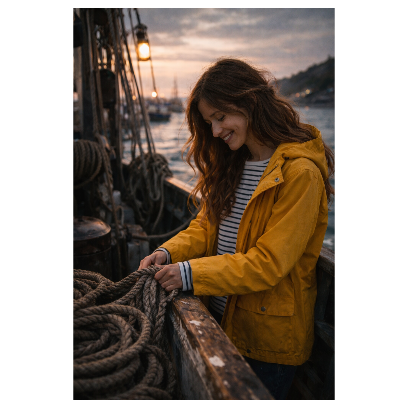 Acoustic guitar and subtle accordion-driven track, live male vocals, warm and deep voice, raw and melancholic emotion, Slow to moderate tempo (65–75 BPM), fingerpicked or gently strummed chords, flexible rhythm with natural pauses, Emotional arc: starts fragile and introspective, builds toward dramatic crescendos in refrains and bridge, Minimal instrumentation—focus on vocal nuances, guitar intimacy, and accordion melodic layers, subtle reverb, Atmosphere: poetic, gritty, melancholic, nostalgic, evoking ocean, storms, fishing life, solitude, and human endurance, Include soft vocal crescendos, whispered lines, and expressive pauses to convey longing, struggle, and resilience