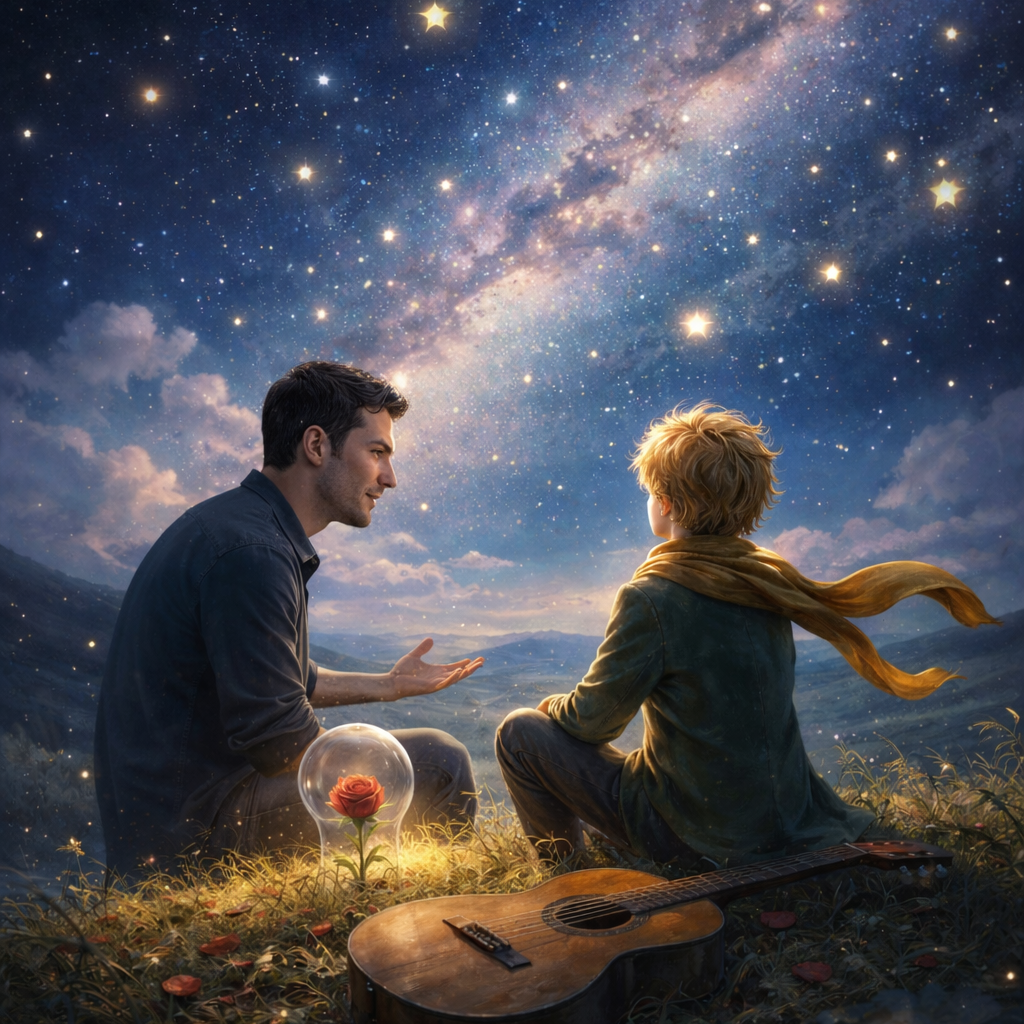 Acoustic guitar-driven track, live male vocals, warm and deep voice, expressive and raw emotion, melancholic and introspective, Guitar played in fingerstyle or soft strummed chords, moderate tempo (around 70–80 BPM), free-flowing rhythm with subtle pauses, Emotional dynamics: starts soft and fragile, gradually building intensity at key moments, Minimal instrumentation, no drums, focus on vocal nuances, subtle reverb to create intimacy, Atmosphere: poetic, nostalgic, fragile yet luminous, with moments of dramatic tension and melodic softness, The performance should feel intimate, as if the singer is alone in a quiet room, pouring his heart into the music