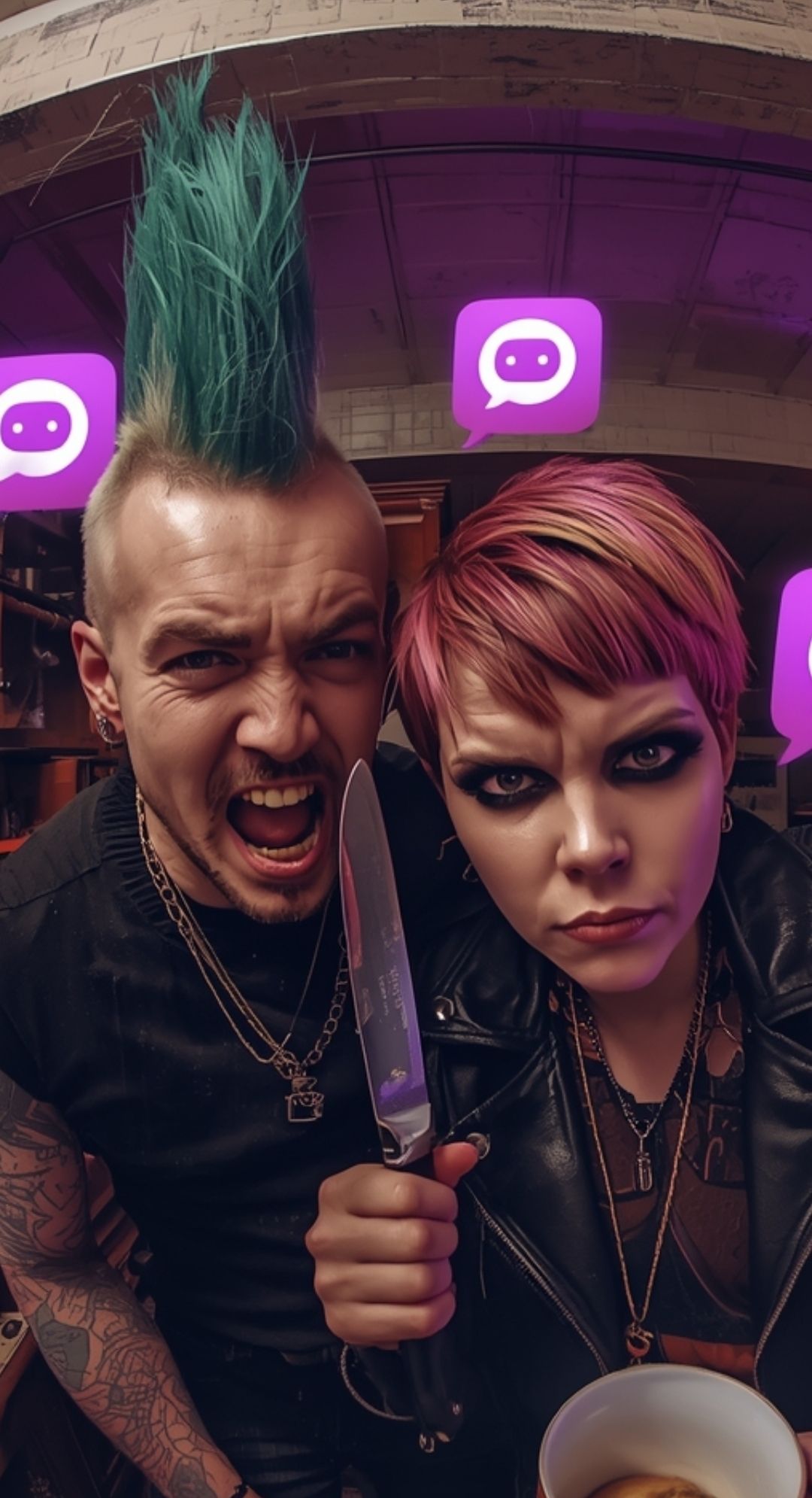 funny fast punk rock, fast tempo, raw and aggressive guitars, distorted power chords, driving bass line, tight fast drums with hi-hat and snare emphasis, Vocals should be angry, half-screamed, with gang vocals (choir shouts) in chorus and backing voices, Energy should be rebellious, noisy, powerful male voice, powerful back vocals