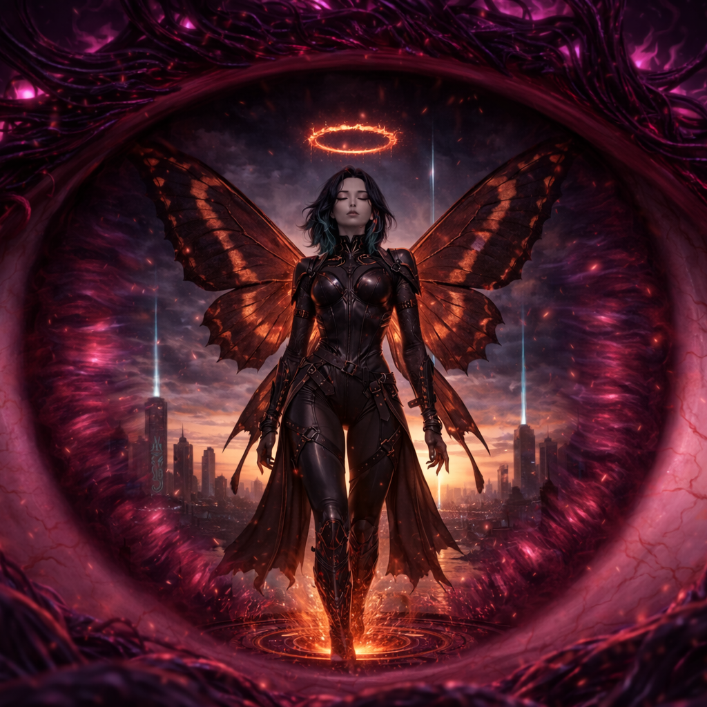 Opening with a metallic industrial drone and gravelly, vocoded lead vocals, the track blends robotic chant with driving electronic percussion, Sacred choral synth pads rise in the chorus, countered by distorted bass and erratic glitch effects, Sparse, haunting breakdowns add ritualistic tension, 124 bpm