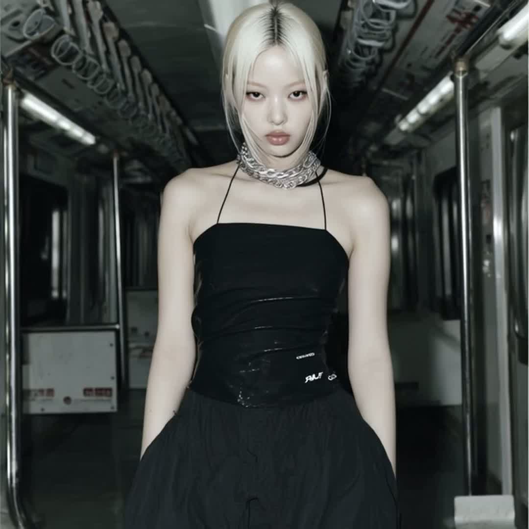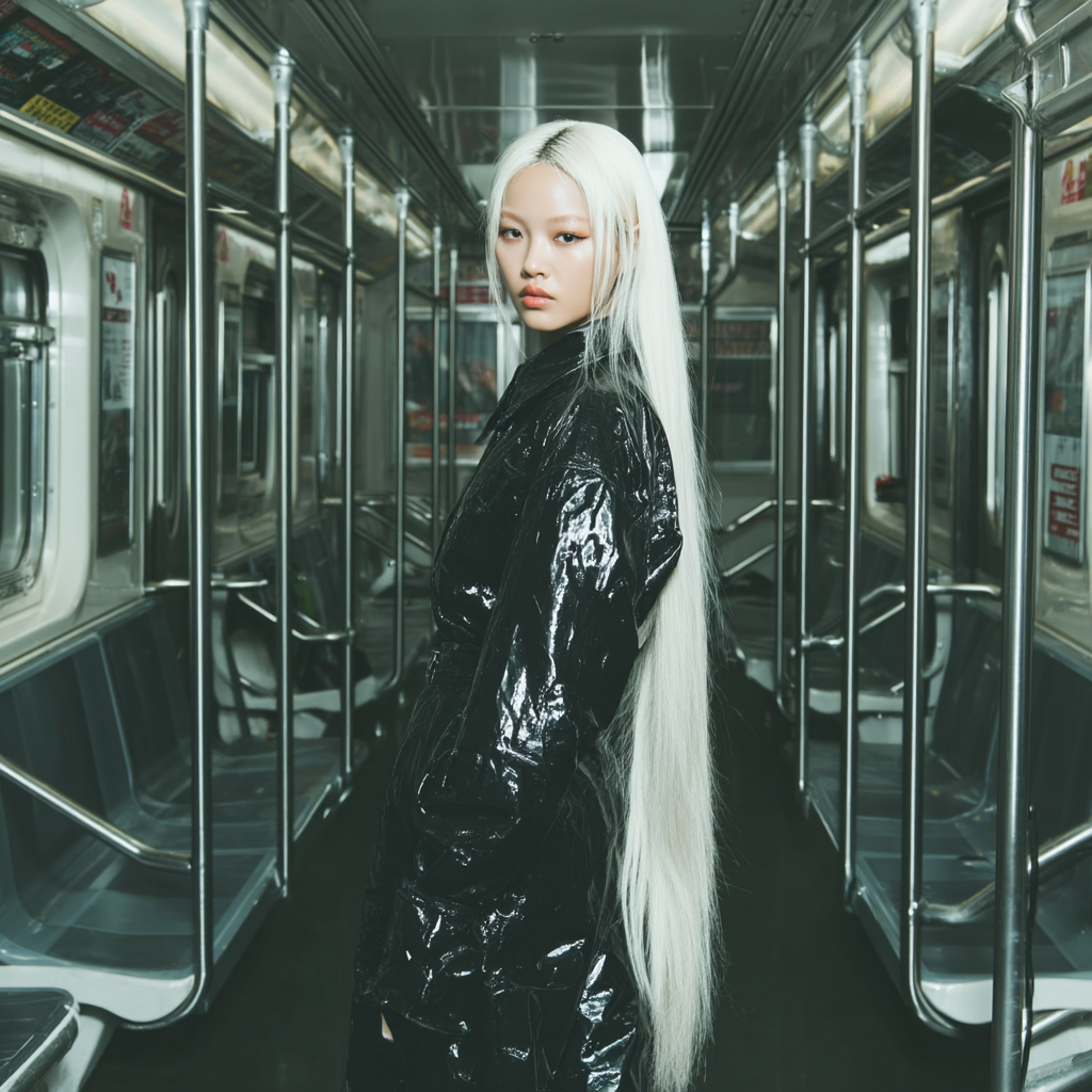 Millic-style production, Stutter house, Euphoric ambient breakbeat mashed with choppy synth K-pop, Trance gate, breathy layered female vocals, hypnotic groove, vocal chop, vocal sample, atmospheric sample, Production: Dark, moody house groove (115 BPM), Deep sub bass, steady four-on-the-floor kick, glitchy vocal chops as percussion, Reverb-heavy plucks, atmospheric subway/train FX, Build tension with risers and low-pass filters, Outro fades on repeated whisper: “about me / about you…”