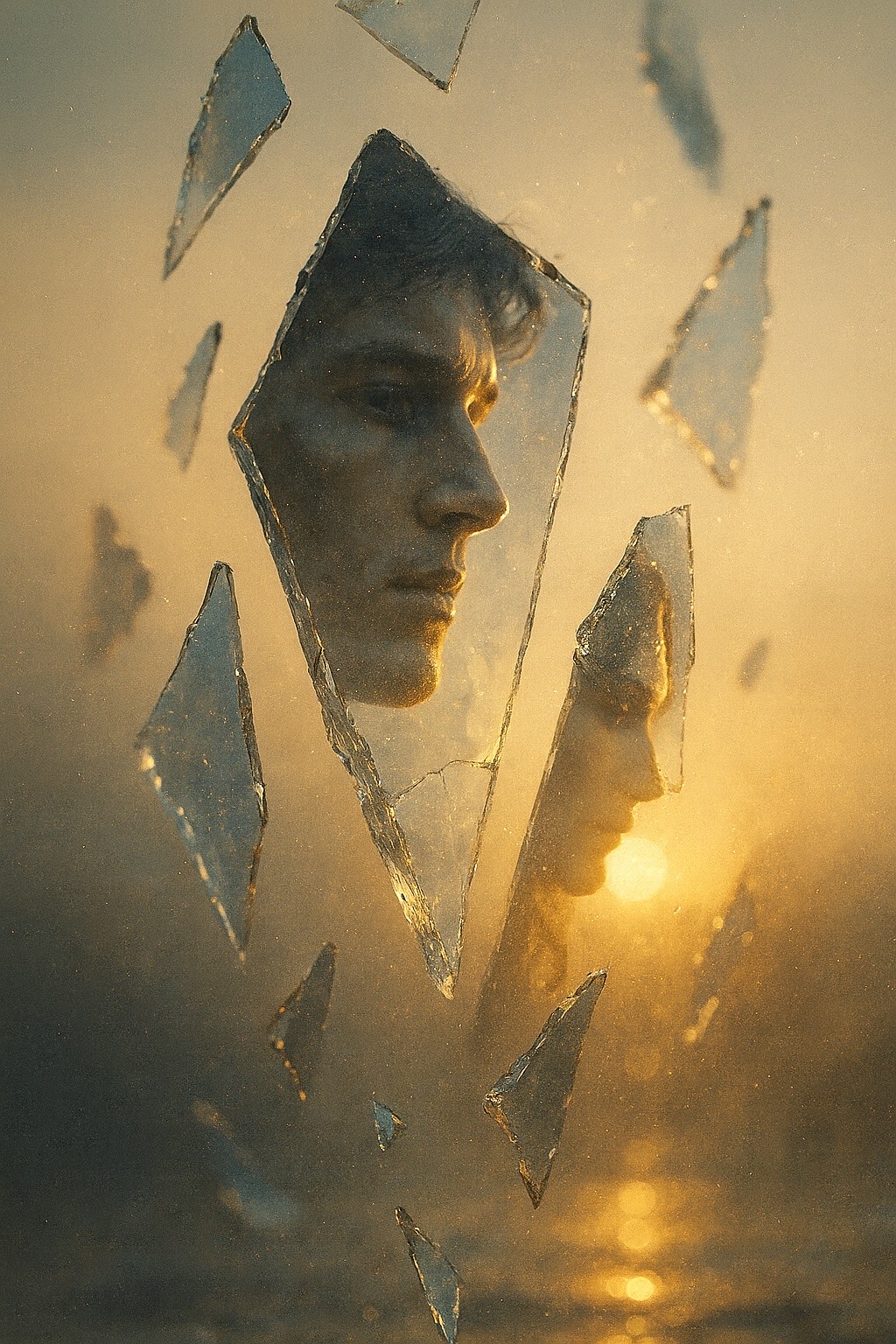 • Drums — hybrid 707/808 kit layered with live acoustic hits; deep sub-kicks, crisp snares with metallic reverb, gated toms, and airy hi-hats, • Bass — distorted analog synth bass blended with electric bass for warmth; side-chained for breathing pulse, • Guitars — clean delay-soaked arpeggios in verses, wide distorted power chords in choruses, reverse swells and feedback tails for transitions, • Synths — ambient pads, granular textures, vocoder swells, glitch fragments, and futuristic sound design; side elements echo vocal melody, • Vocals — male lead, emotional, vulnerable in verses, powerful and breaking in choruses; close-mic’d with light saturation and plate reverb, • Bridge — instrumental build with cinematic strings + rising synth distortion, end
