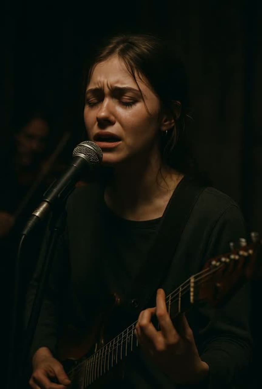 Avant-Indie Rock / Emotional Noise Art; blistered overdrive guitars with sustained feedback; bass snarls through a tube amp, floor-toms thunder and decay in cathedral reverb; rubato, breathing tension; Vocals: female lead trembling → breaking → screaming; fragile vibrato collapsing into hoarse cry; mic gain hot, distortion intentional, Arrangement: minimalist verses under close-room pressure → suspended bass drone in pre-chorus → violent chorus of dissonant open chords, reverse-crashed cymbals, counter-melodic guitar shrieks, Bridge: silence implodes into a 30-second guitar inferno, toms rolling like storms, Mix: cinematic, wide stereo, edges unpolished; atmosphere raw, desperate, ecstatic; an intimate apocalypse fading into ghosted whisper