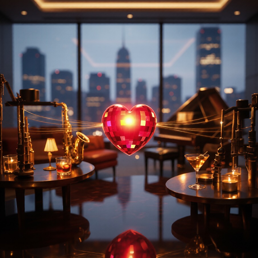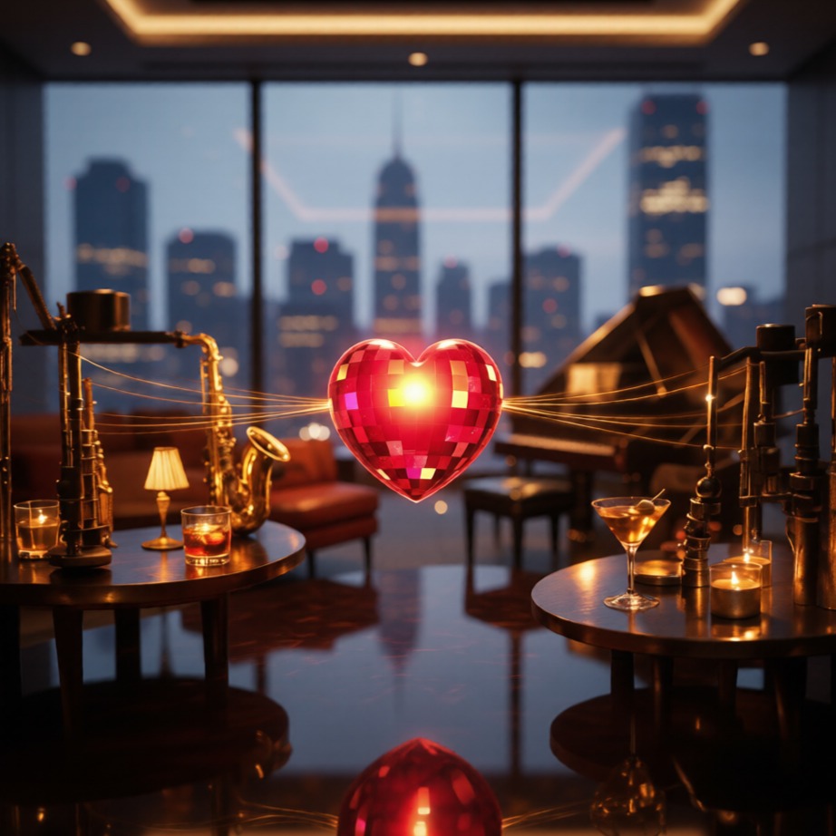 [Instrumental opening, late-night jazz lounge atmosphere, slow rubato piano introduction with smoky extended chords (maj7, 9ths, 13ths), warm tape saturation, intimate room ambience, upright bass enters softly with sparse plucked notes, brushed cymbals swell gently, muted trumpet plays a melancholic, breathy melodic motif, vibraphone adds delicate shimmering accents, tempo gradually settles into relaxed swing with subtle bossa nova undertone, vintage analog warmth, dimly lit cocktail club mood]