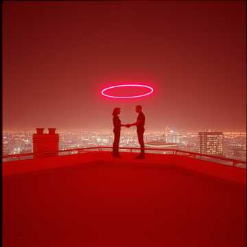 pop, High-gloss K-pop duet with bright glittery synth leads, tight palm‑muted rhythm guitars, and snappy drums, Verses are nimble and playful with call‑and‑response male/female vocals; pre‑chorus adds stacked harmonies that climb into tension, Chorus explodes with sidechained synth swells, punchy kicks, and layered chant hooks, Middle‑8 flips to a half‑time groove over airy pads, then jumps into a key‑lift final chorus with ad‑lib trade‑offs and octave‑split male/female vocals, bright, k-pop, female vocals, playful