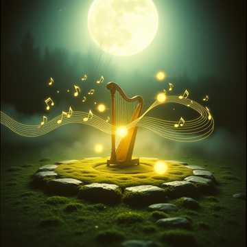 Driving Celtic orchestra over tight stepdance percussion and atmospheric electric guitar swells, like Keeley band energy, Fiddles and tin whistle carry the lead over pulsing strings; bodhrán and low drums push the dance patterns, Playful female opera harmonies soar in the chorus, doubling the main melody an octave up, with occasional wordless runs, Energy arcs from mysterious, misty intro to a powerful, swirling finale, celtic, orchestral, opera, playful, harmony