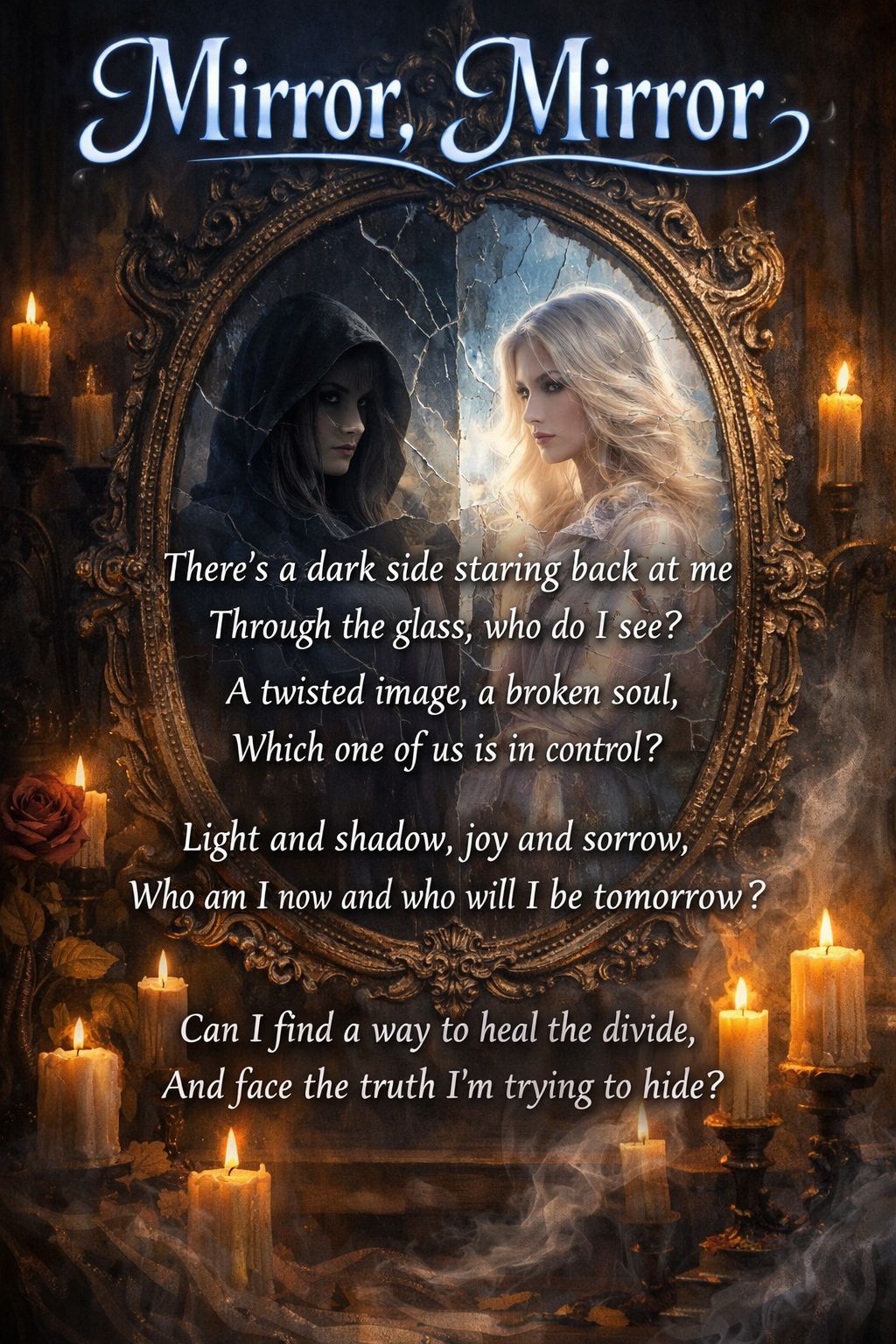 Theatrical Pop-Rock with dark Vaudeville flair, funky basslines, syncopated guitars, funky trumpets, and dramatic dynamic shifts, Verses playful yet biting, dripping with sarcasm; choruses explosive, soaring, and hook-heavy, Rich vocal variety: clean melodic leads up front, layered harmonies, occasional whisper effects for tension, After Verse 2, intense build leads to a call/response breakdown: alternating low growls and high, piercing screams (4 alternating lines) to mimic an argument with inner demons, Breakdown blends staccato guitar chugs, brass stabs, and percussive hits for drama, Crisp, wide mix; bass warm and bouncy; highs sharp, Atmosphere: witty, chaotic, and emotionally charged with technical precision