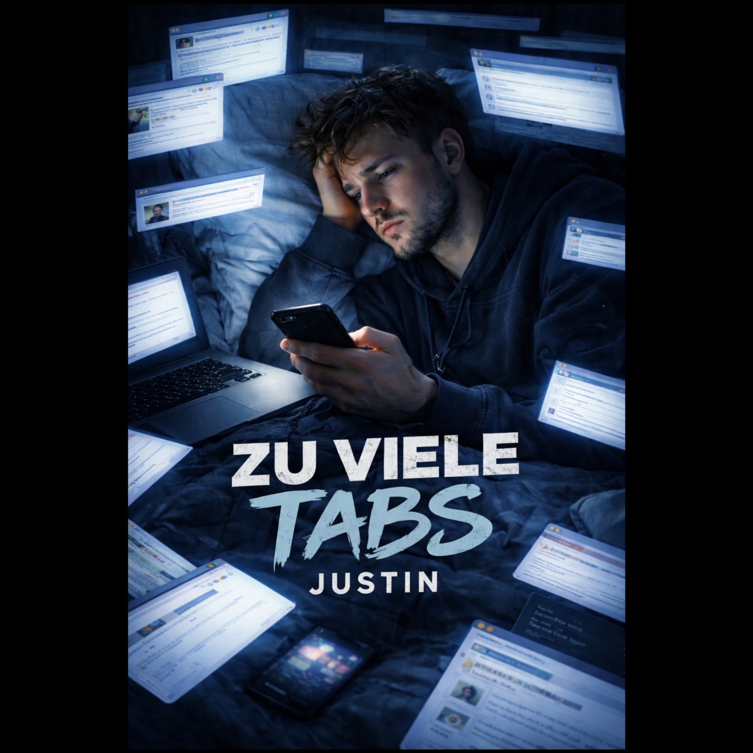 German poetic rap, spoken word with flow switches, introspective, slightly anxious, 82 BPM, E minor, soft piano, subtle glitch textures, light lo-fi drums, ambient pads, voice forward, raw and intimate, no autotune, close mic, slightly unstable atmosphere