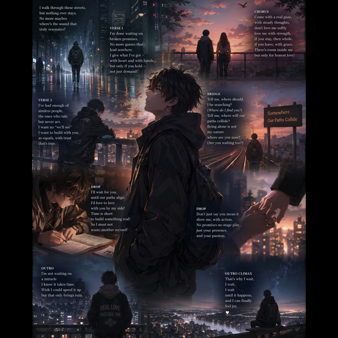 Vocal style: between singing and rap, lots of space, echo + reverb, emotional restraint (weniger schreien, mehr fühlen)