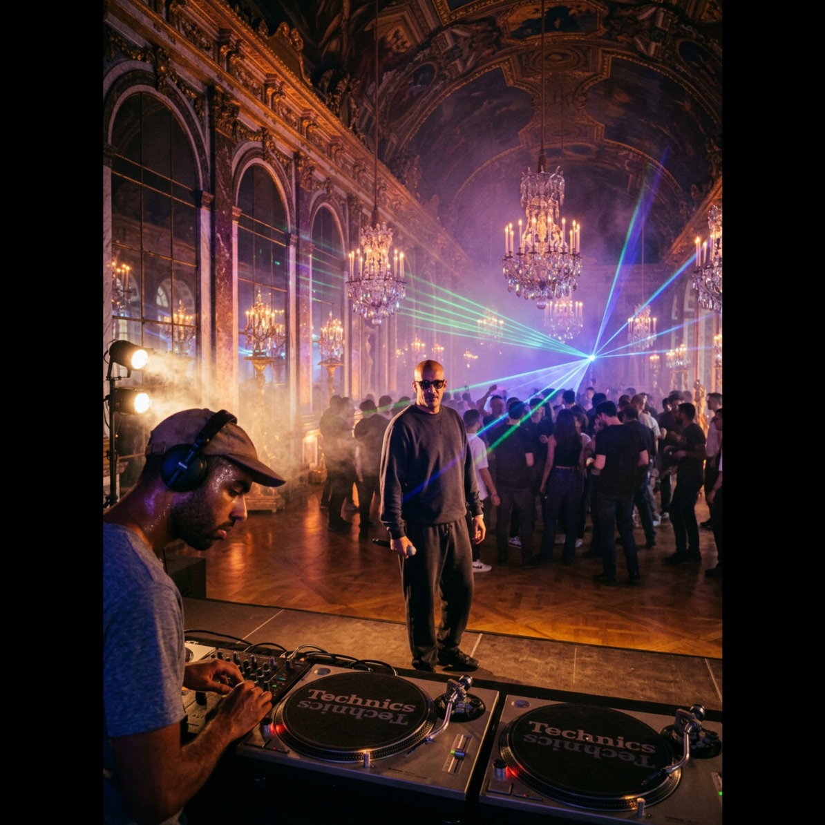 french hip-hop 2000s, filtered baroque clavecin loop warm and saturated, punchy dry kick no reverb, snare on 2 and 4, round lowpass filtered bass French Touch, breakbeat 105bpm mid-tempo, minimal arrangement each element precise, traverso flute baroque oboe counterpoint, vinyl warmth filter, Nouvelle Vague cinematic mood, male MC deep slightly raspy authoritative voice, clear diction every consonant articulated, mid-tempo flow syllables on downbeat, natural pauses between bars silence as part of flow, intense but never aggressive tone, understated nonchalance on phrase endings, measured rhythmic cadence laid-back but deliberate, festive nostalgic tone, French lyrics, Île-de-France suburban theme, ‑singing vocals