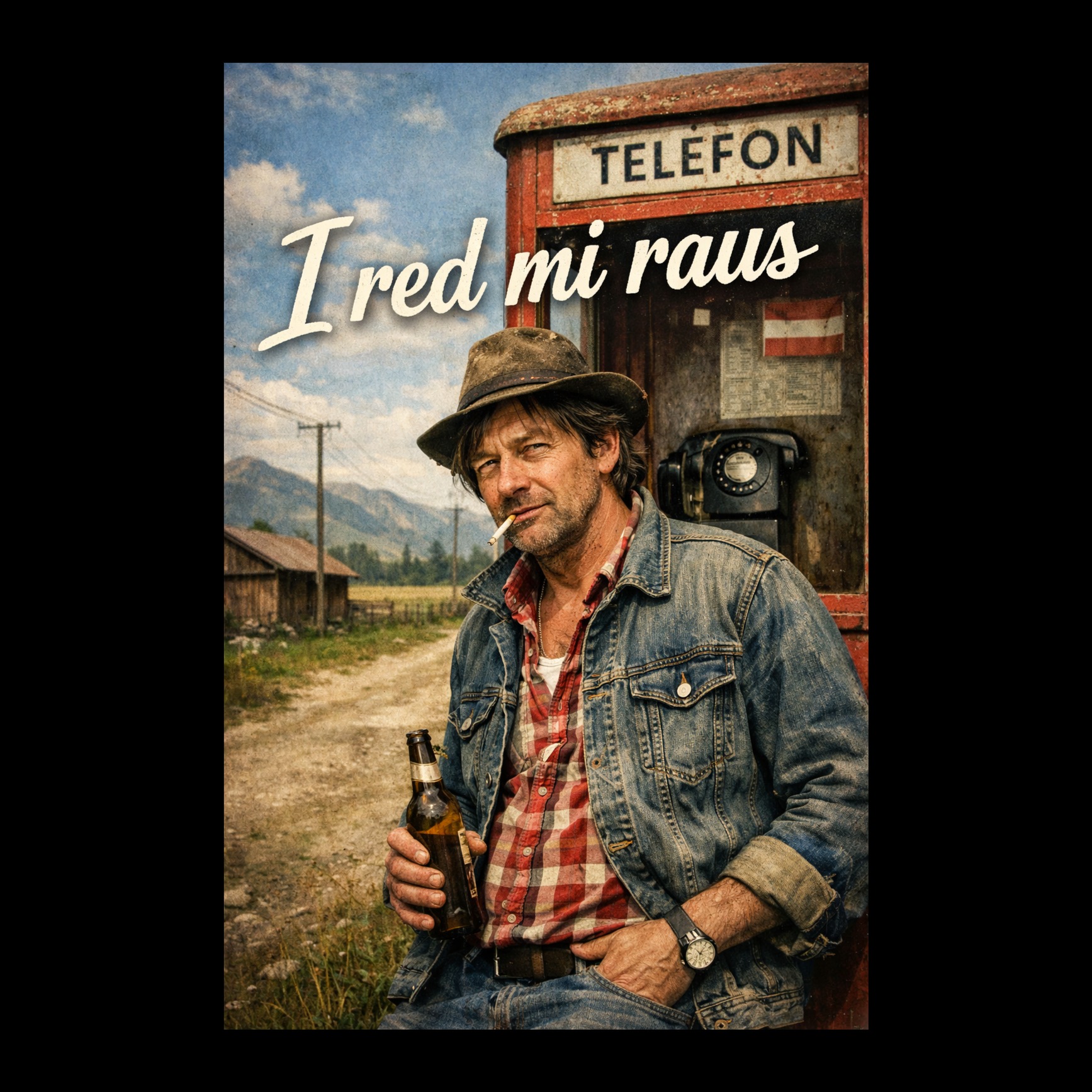 Austropop, schlager-pop, 110 BPM, Sprechgesang, dialect male vocals, syncopated funky bass, palm-muted guitar chops, handclap backbeats, rimshot snare, bright piano stabs, analog synth plucks, tight kick drum, dry vocal close-mic, slapback delay, tape saturation, playful irony, nervous swagger, verse-hook format