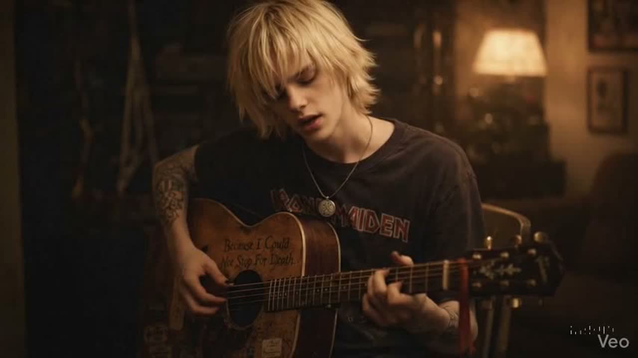 A Emotional sleaze glam metal and power ballad with a melancholic 1980s Sunset Strip after-party atmosphere, inspired by the vulnerable side of Faster Pussycat and L, A, Guns, Vocals should be male raspy but gentle, tired, emotionally honest, intimate close in the Style of Taime Downe, Violin Central emotional element, Long sustained notes in intro and verses, slow aching counter-melodies, Short expressive stabs between vocal lines, Drums soft, steady pulse, warm, restrained hits, gentle, slightly open in the Style of Tommy Lee, Bass Warm, round tone, Simple, supportive lines that emphasize emotion in the Style of Nikki Sixx, Lead Guitar Minimal, bluesy fills, One short, emotional lead line in the Style of Slash, Rhythm Guitar Clean to lightly overdriven tone, Slow open chords, gentle strumming, lots of space air in the Style of Izzy Stradlin, Mood & Theme : After-party emptiness, emotional vulnerability, tears after pretending to be strong, Mascara as a symbol of broken composure