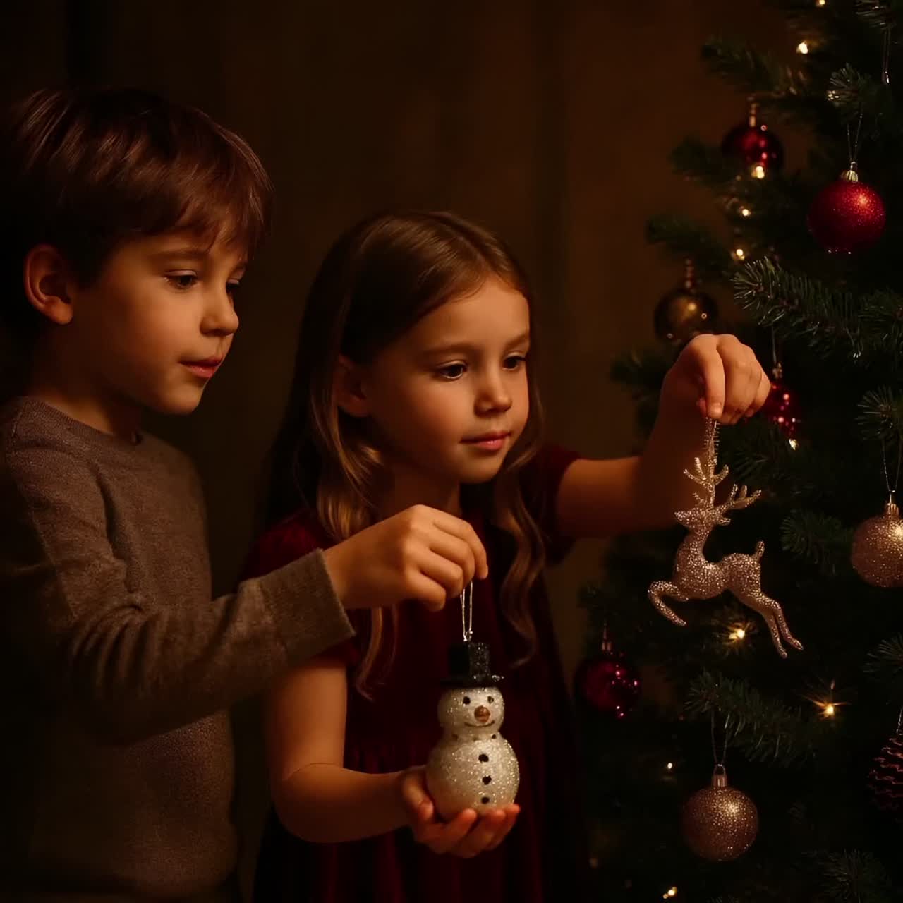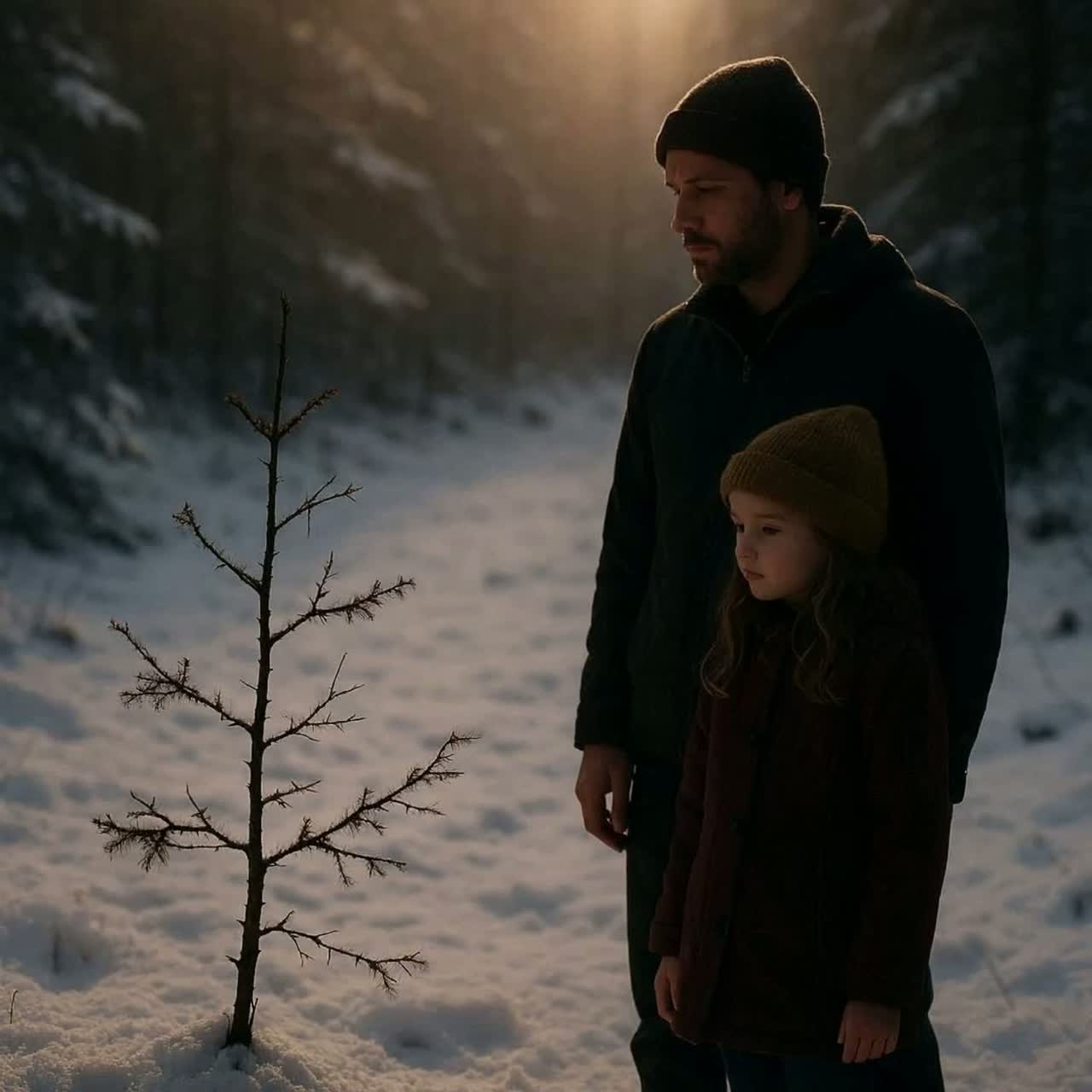 Whimsical, cinematic Christmas song with a mystical forest atmosphere, Begins sad with slow violins, lonely piano, and soft wind chimes, Gradually builds to magical joy with harp glissandos, flutes, acoustic guitar, shimmering bells, and playful strings, Story about the smallest, saddest Christmas tree brought home, decorated, and made to shine, Heartwarming, fairy-tale, magical, uplifting, cinematic folk style, Male warm grittle soft, emotive, with clear storytelling style vocals, Vocals: male or female, soft, emotive, with clear storytelling style