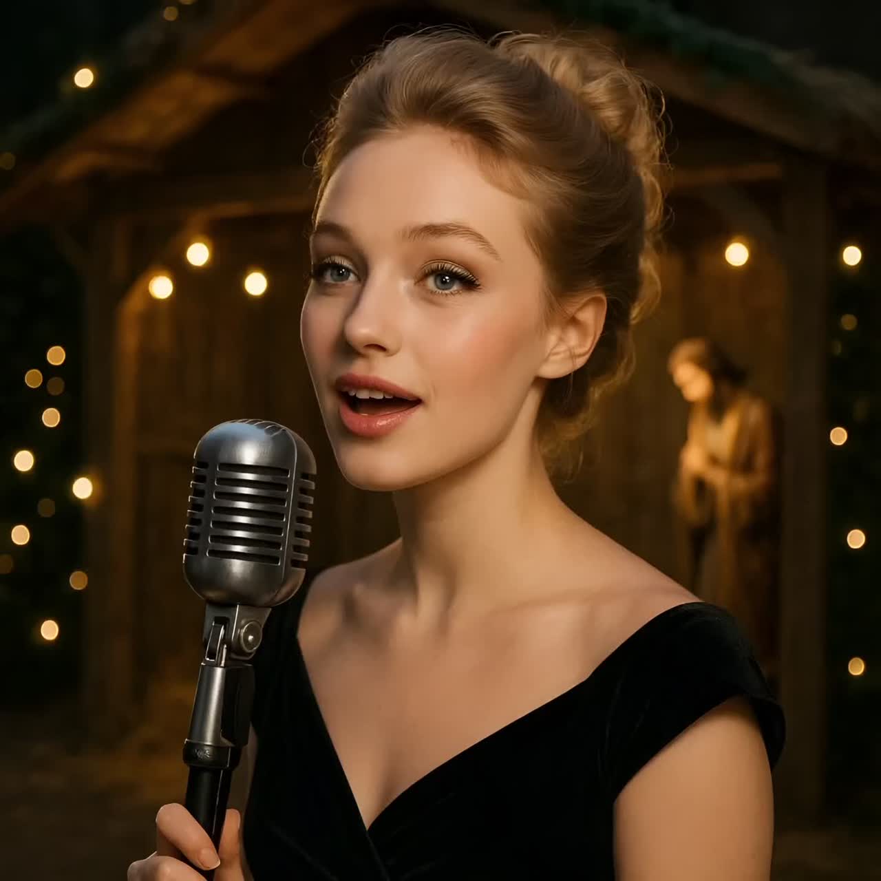 Style: emotional, intimate Christmas ballad, featuring angel choir harmonies, solo soprano, soft strings, church organ, and gentle piano, Female indy intimately vocal, Mood: sacred, peaceful, celestial, reverent, Tempo: slow and flowing