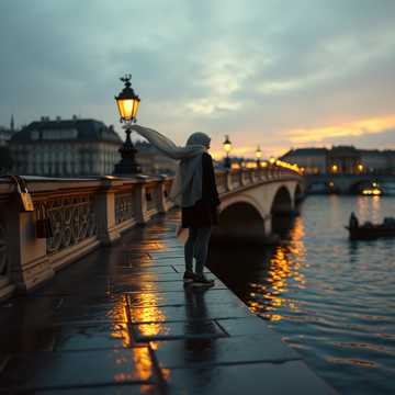 Jazzy-electro parisian ambience, soft rain, warm double bass, brushed drums, subtle saxophone, emotional storytelling, cinematic atmosphere, bilingual French/English female vocal, elegant, soulful, danceable groove, 528Hz + 639Hz + 432Hz blended subtly, hopeful and intimate, no spoken word