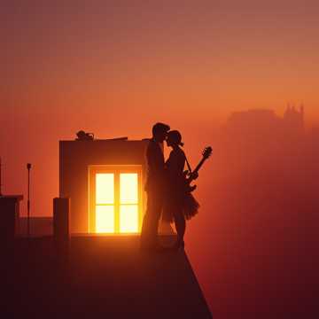 Cinematic electro-pop with warm reverb, soft parisian rooftops ambiance, intimate piano, mellow electric guitar, deep emotional bass, bilingual FR/EN female vocal, sensual but tender, slow-building groove, no spoken word, 528Hz + 639Hz + 417Hz harmonics