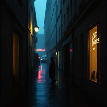 Dark electro-pop with noir cinematic tension, subtle rain ambience, distant footsteps, low pulsing bass, muted synth arpeggios, bilingual FR/EN female vocal, suspenseful, elegant, emotionally restrained, no spoken word, frequencies 396Hz + 741Hz + 852Hz for grounding, truth, release