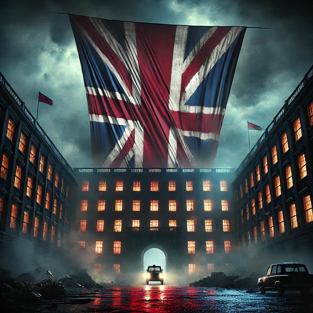 orchestral haunting grime, demonic voice, posh british, demonic voice, slow, drill, male vocals