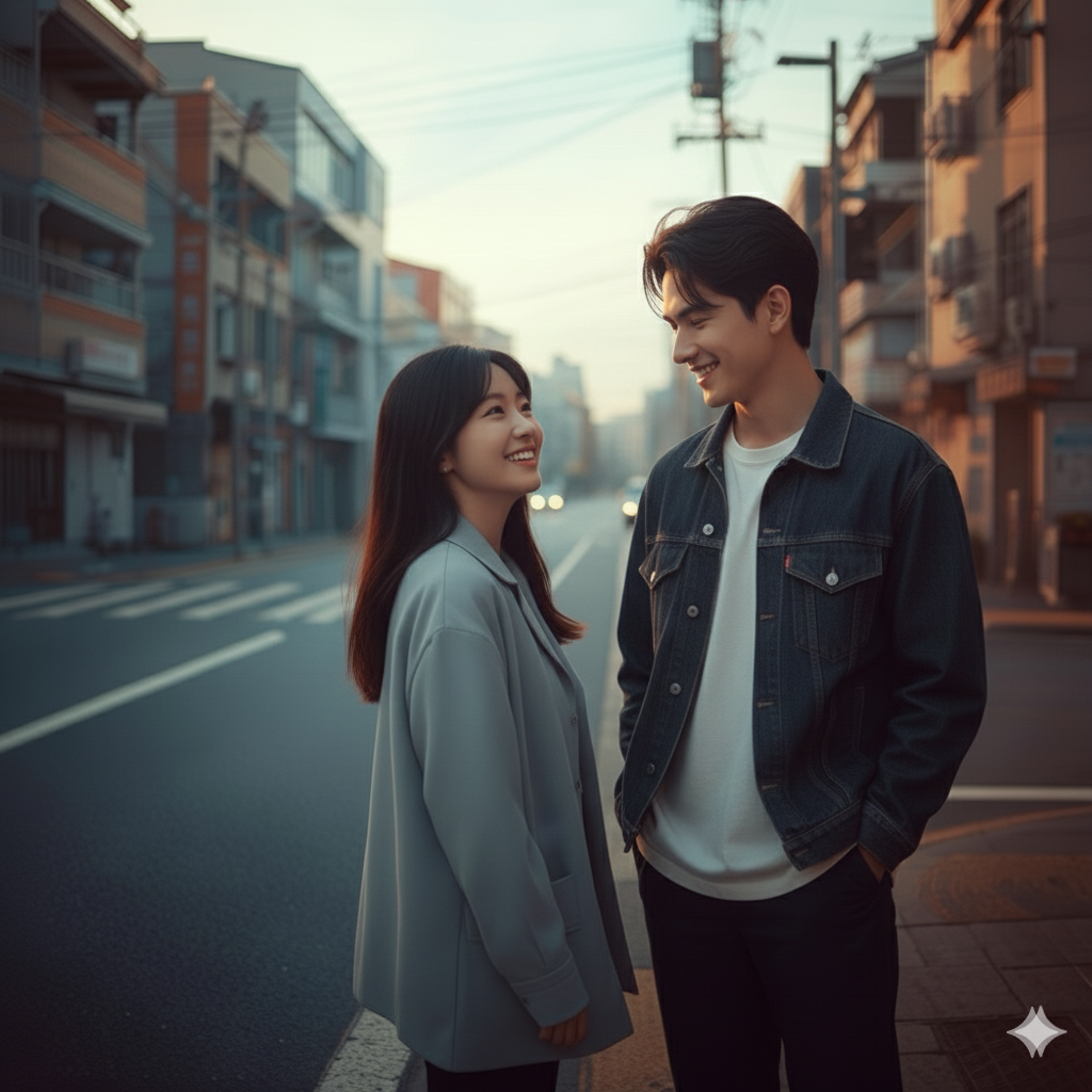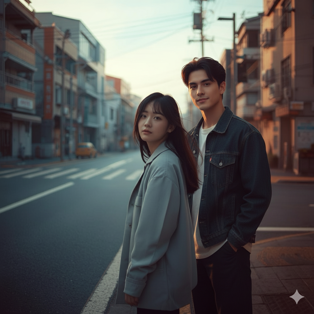 Cinematic pop ballad with dramatic build-up, Mid-tempo (90–100 BPM), Piano and flowing synths lead the song, gradually expanding, Emotional strings and subtle electronic beats, Male and female vocals appear separately, then overlap emotionally, Modern J-pop style, dramatic and cinematic, Theme: crossing paths in the same night, near-miss destiny, No lo-fi