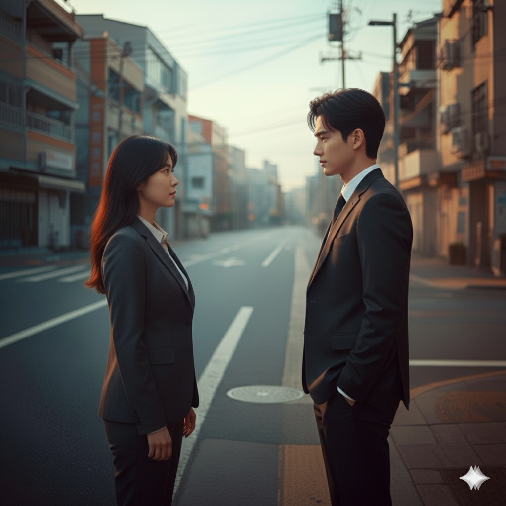 Cinematic emotional pop ballad, Mid-tempo (80–90 BPM), slow build with dramatic climax, Piano-led arrangement with strings and subtle electronic textures, Starts restrained and melancholic, grows intense and passionate toward the end, Male and female vocals, mature and emotional, Theme of separation, time passing, loss, reunion, and rediscovered love, Deeply dramatic, heartfelt, and cinematic, No lo-fi