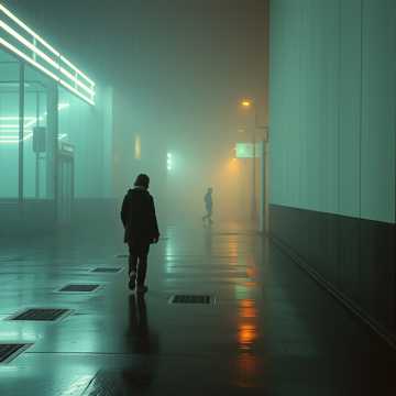 Cinematic instrumental with light tension, Mid-tempo (90 BPM), Minimal piano motif and distant pads, Restrained rhythm, subtle unease, Feels like passing someone you almost recognize, No lo-fi