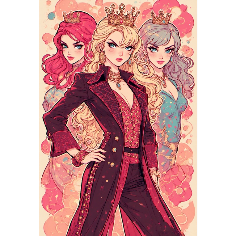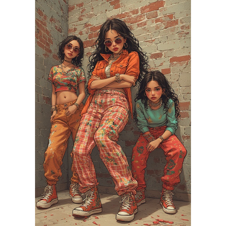 girl group, girl band, pop, dynamic range, a lot of bass, smooth transitions, smooth flow, soft pop, 70's, groovy, disco, confident, attitude, sassy