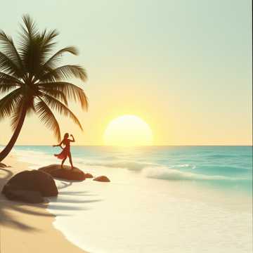Happy beach vibe, 105 BPM, tropical pop groove, warm bass, acoustic guitar, soft piano, light drums, summer feel, friends, sunshine, ocean waves, joyful, relaxed