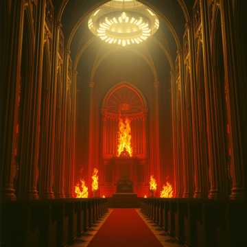 Spanning 7-8 minutes, this progressive power metal epic fuses industrial precision with complex songcraft, Verses wield surgically tight, polyrhythmic Meshuggah-like guitar chugging and militaristic drumming, Old, resonant male vocals are thickly layered, merged with relentless, non-supportive choirs until the voice becomes inhumanly authoritative, Anthemic choruses open wide with soaring power metal riffs and symphonic soundscapes, The Delve section introduces crushing, sustained low-end and oppressive synth textures, Breach/Legion unleash blistering, staccato rhythmic barrages and syncopated riffing, Delirium/Sanctum veers into eerie dissonances: minor 2nds, augmented 4ths, unsettling choir clusters layered over rumbling ambience, No instrumental romanticism—just cold, immovable force from all elements, ‑doubt, ‑uncertainty, ‑fatigue, ‑weakness, ‑human emotion, ‑empathy, ‑mercy, ‑questioning, ‑hesitation, ‑defeat, ‑chaos, ‑disorganization, ‑improvisation, ‑jazz elements, ‑loose timing, ‑intimate vocals, ‑vulnerability