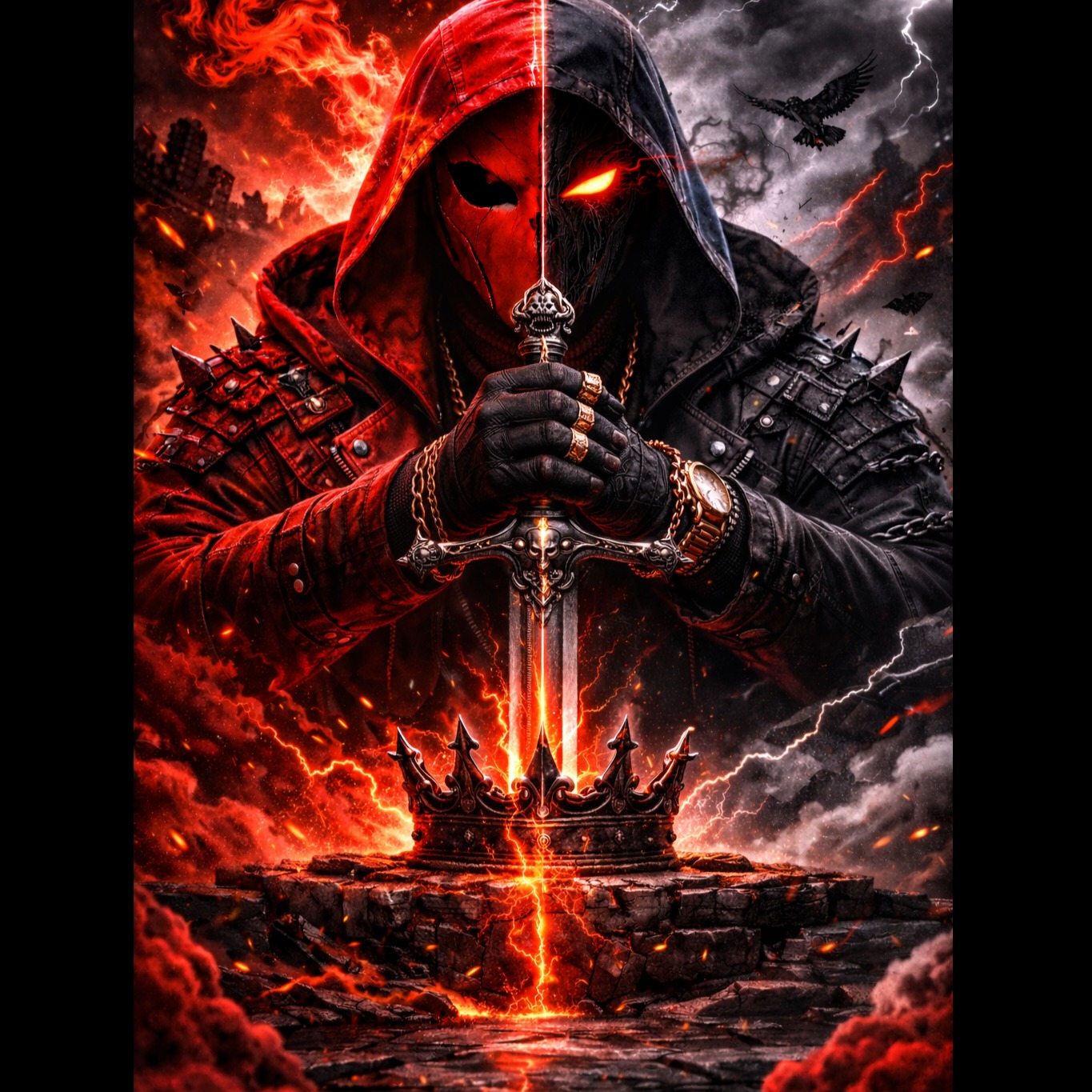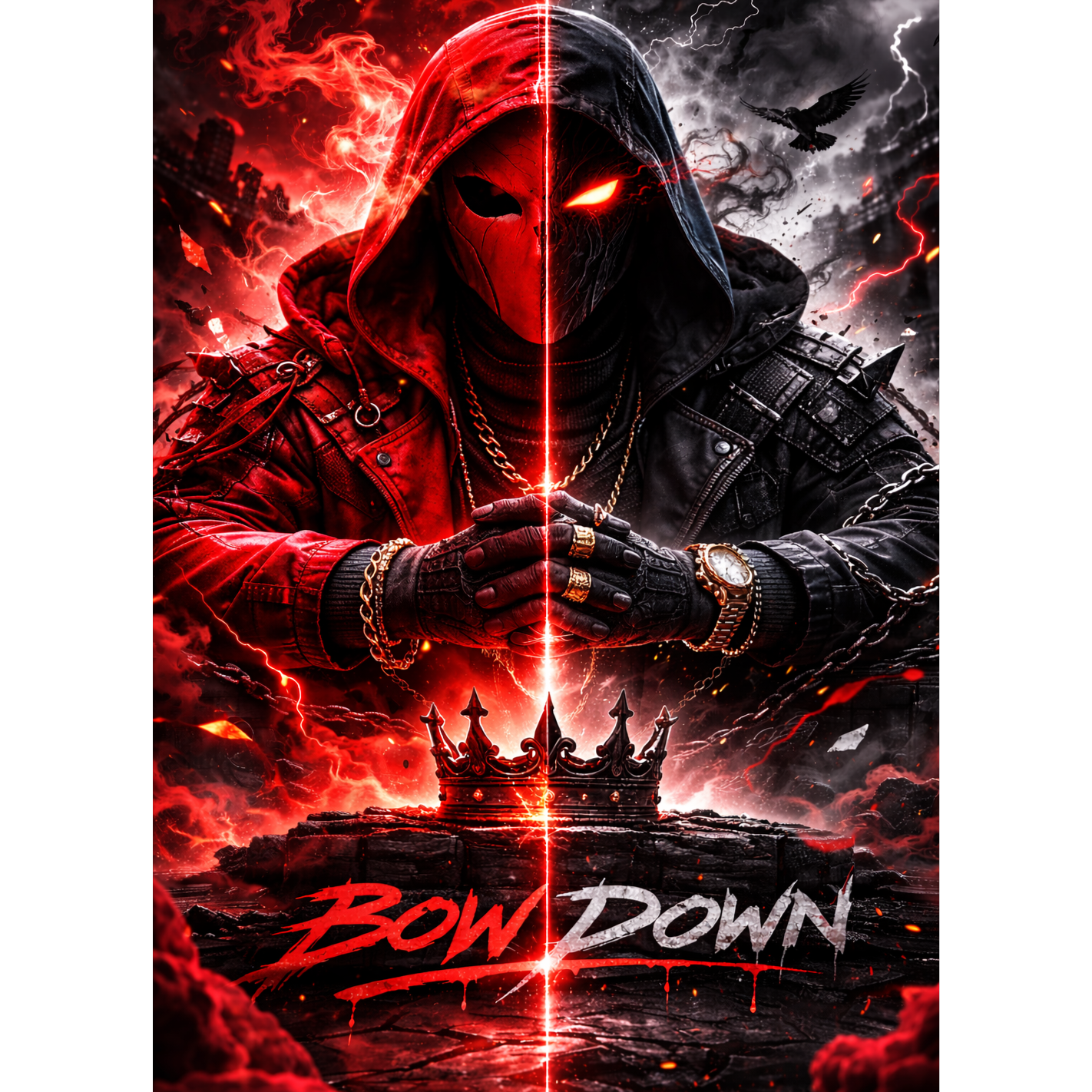 fast-paced, high-energy rap-trap diss track, 140 BPM, featuring punchy 808s, deep sub-bass, crisp snares, and rapid rolling hi-hats, Bright trap synths and subtle melodic plucks accentuate hooks, Vocals are confident, fast, multi-syllabic, with precise rhythmic delivery and commanding presence, Spoken interludes provide cheeky arrogance and cinematic pauses, Chorus is anthem-style, layered for hype, untouchable, villain-king energy, lethal and stylish, Focus on lyrical dominance, technical precision, and unstoppable confidence, perfect for arena-ready performance, streaming, and high-impact listening