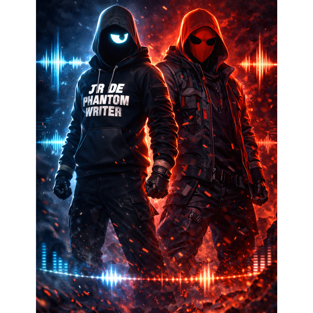 anthem-style, catchy, echo-y, establishing the track’s open-for-remix vibe, Follow with Phantom’s original verse exactly as written, maintaining lyrical, magical, and futuristic energy, Then R, E, D enters with a spoken cinematic intro: “Ahh… ok… game on… here we go…” followed by a hardcore battle-royal rap verse—aggressive, confident, multi-syllabic, cinematic, and high-energy, Use echo, reverb, and “sound wave” effects on key bars, Bass tight, drums crisp with punchy kicks, rolling hi-hats, atmospheric synths and cinematic pads layered underneath, R, E, D’s bars are precision-crafted, lyrical warfare, multi-syllabic, swagger-filled, apex-level rhymes, Finish with a combined duo hook, echoing and collaborative, Structure: Phantom hook → Phantom verse → R, E, D spoken intro → R, E, D verse → Duo hook, Smooth transitions, polished, epic, aggressive, exclusive, remix-ready