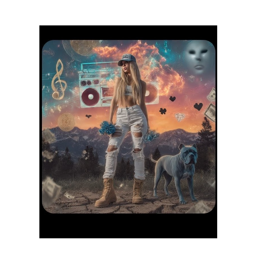 A high-energy, modern hip-hop track with a dark, aggressive tone and a tempo of 140 BPM, The production features a heavy, distorted 808 bassline that provides both the melodic foundation and rhythmic punch, Sharp, syncopated trap drums include crisp claps on the 2 and 4, rapid-fire hi-hat rolls with varying velocities, and a punchy kick drum that follows the 808 pattern, A haunting, atmospheric synth loop with a minor-key melody plays in the background, layered with subtle industrial sound effects and occasional vocal chops, The female vocals are delivered with a confident, rhythmic flow, utilizing aggressive staccato phrasing and frequent ad-libs, The mix is polished and loud, with a wide stereo image for the synths and a centered, dry vocal presence that cuts through the heavy low-end