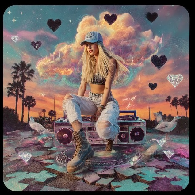 A high-energy industrial hip-hop track with a dark, cinematic atmosphere and aggressive electronic production, The song features a distorted, gritty bassline and a heavy, syncopated drum beat with metallic percussion hits, The tempo is approximately 95 BPM, The vocal performance is a rhythmic, spoken-word delivery with a defiant and urgent tone, layered with subtle distortion and reverb, Synthesizer elements include dissonant, screeching leads and atmospheric pads that create a sense of tension, The structure consists of a build-up intro, followed by repetitive, punchy verses and a chaotic, layered chorus, Production techniques include heavy compression, glitch effects, and sudden dynamic shifts to emphasize the industrial aesthetic, The overall sound is abrasive, modern, and polbass, rap, drum, drum and bass, hip hop, beat, trap, electro, EDM, deep deep techno hand pan drum, UK extreme Auto-tune effects vocals otherworldly, shimmering arpeggios, female singer, melodic techno, epic music