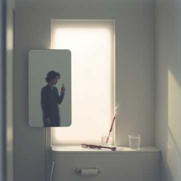 An extremely minimal, intimate track that feels like standing alone in a bathroom at dawn, Begin with near silence or a faint room hum, like fluorescent lights buzzing, Instrumentation should be sparse to the point of discomfort: possibly a single acoustic guitar note, detuned piano, or soft sustained tone that appears and disappears, No sub bass, no drops, no rhythmic drive, Drums are absent or barely implied through texture, Leave breaths, pauses, and small imperfections in the vocal; the performance should feel observed rather than performed, The tempo is loose and uncounted, allowing lines to hang in space, Repetition should feel psychological, not musical, The overall mood is cold, exposed, and honest — quiet tension without release, The song should end unresolved