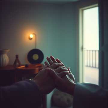 A warm, intimate closing track centered on presence and care, Instrumentation is simple and human: gentle acoustic guitar or clean electric, soft bass, and minimal percussion such as brushed drums or a light pulse that feels like breathing, Introduce warm, gently played Rhodes-style keys or soft electric piano beneath the acoustic elements, adding subtle soul-inflected harmony without becoming glossy, Apply light tape saturation or analog-style softness so the track feels lived-in and tender, Vocals are close, natural, and reassuring, with minimal effects, emphasizing trust and clarity, No dramatic builds or drops, The song should feel settled and complete — not fading away, but staying — like remaining with someone until the quiet feels safe