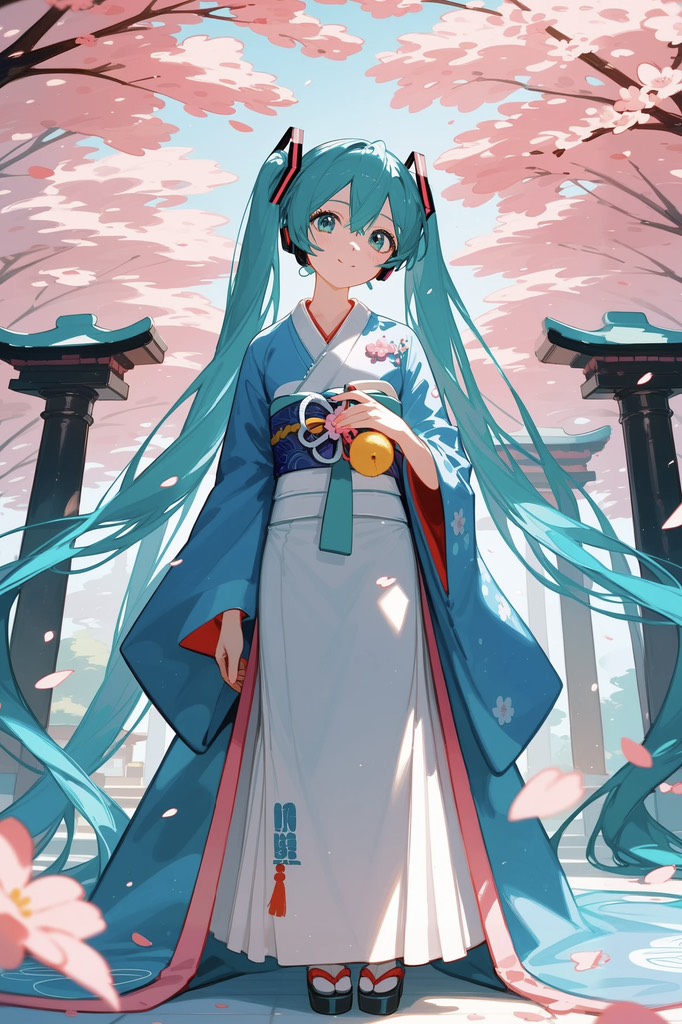 A fusion of Gagaku, trance-ANISON, Neo Shoegaze, and Jungle, Fast breakbeats, [lively taiko, shakuhachi, shamisen], glitchy shakuhachi textures, [vocaloid, HatsuneMiku], [soft Kyoto dialect flavor]