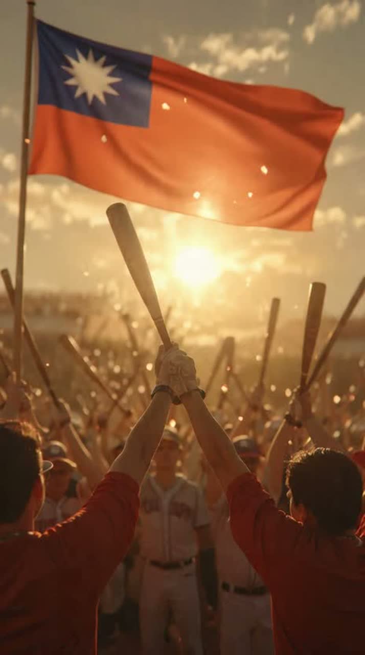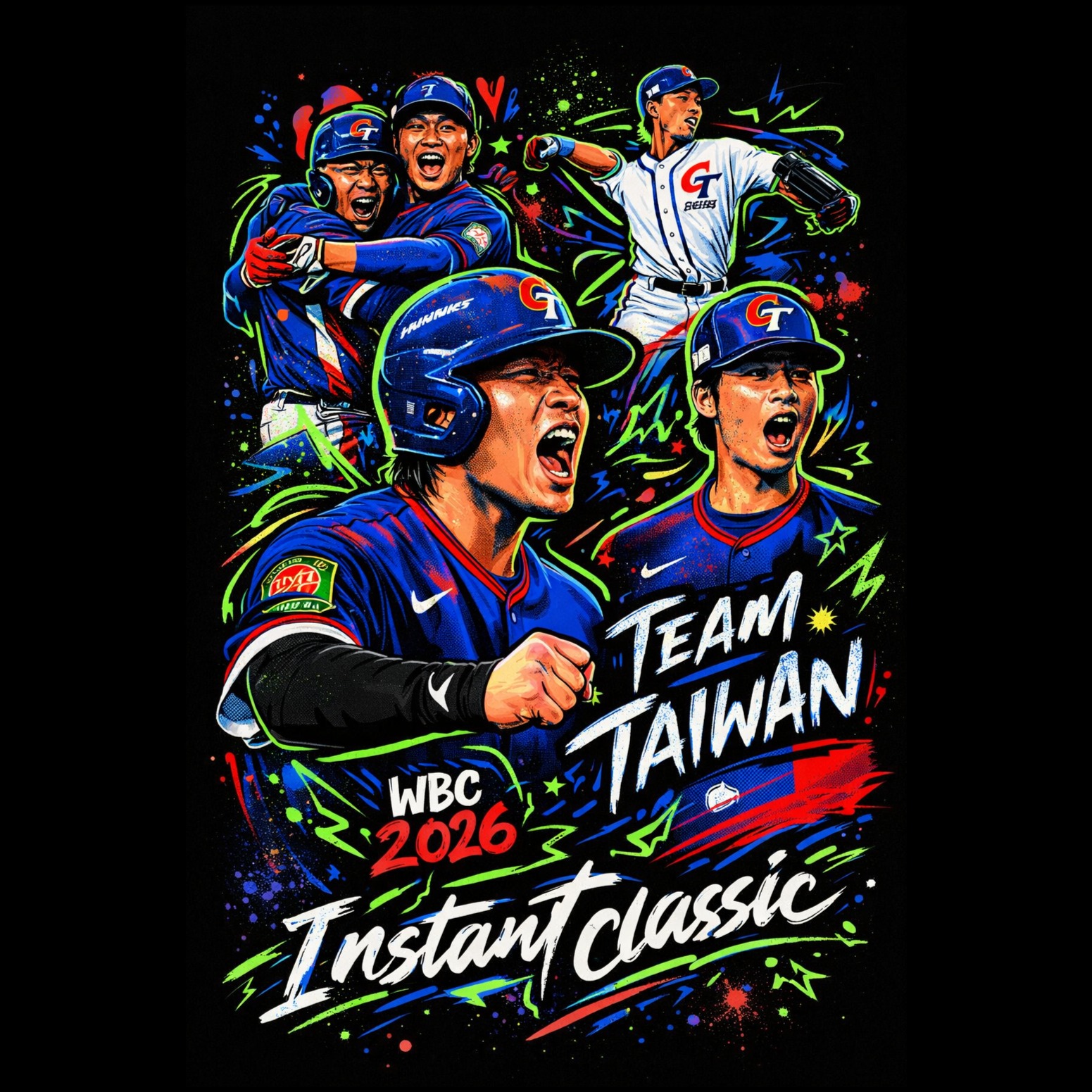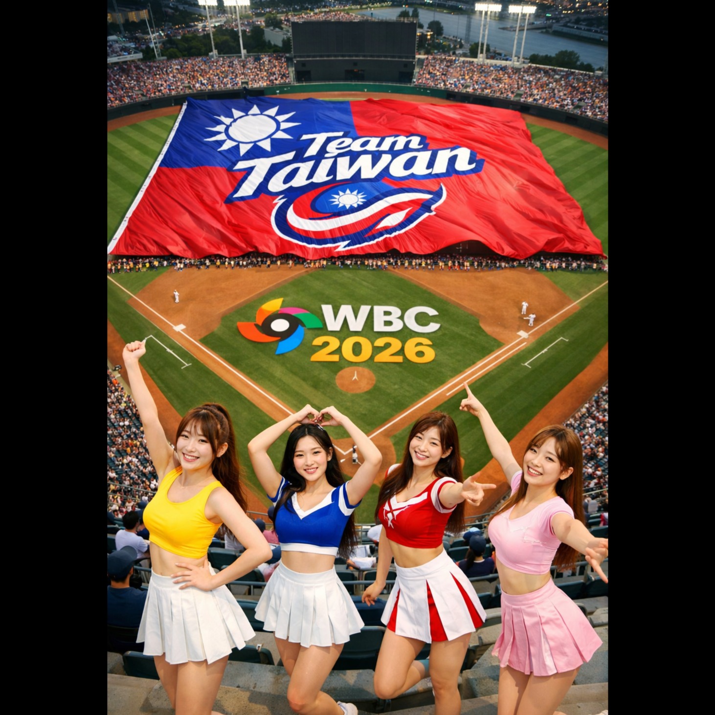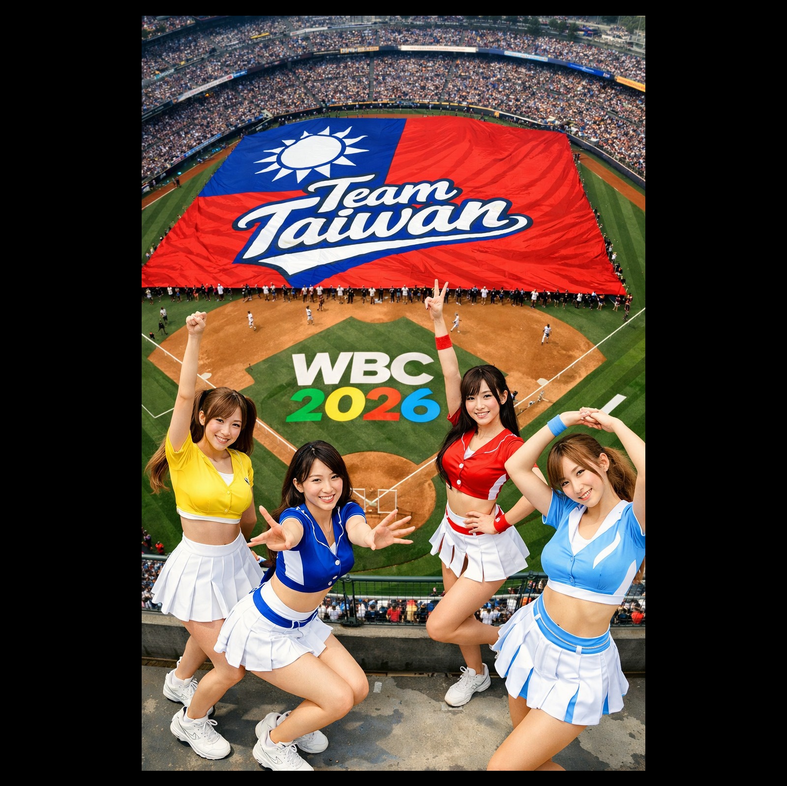 A high-octane stadium anthem kicks off at 148 BPM with tight rock drums, mass stomps, synchronized claps, and roaring crowd chants, Heroic brass stabs cut through layers of crunchy guitars, while EDM risers lead to an explosive, festival-size chorus—big gang vocals shout "Team Taiwan!" in bold call-and-response, backed by minimal melodic hooks and percussive handclaps, The arrangement blends K-pop polish with raw Japanese cheer energy, keeping sections uncluttered so fans can easily shout along, ‑piano