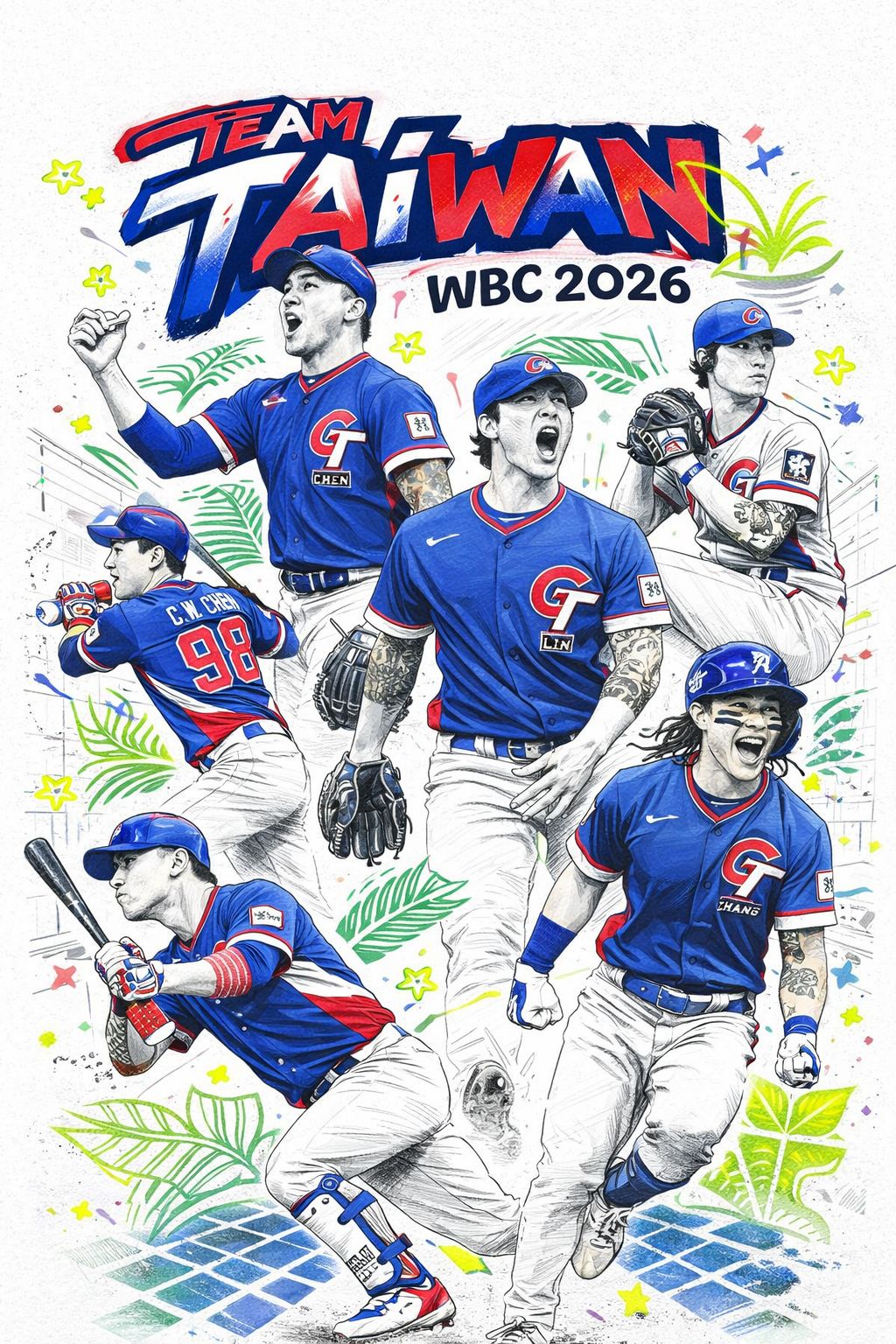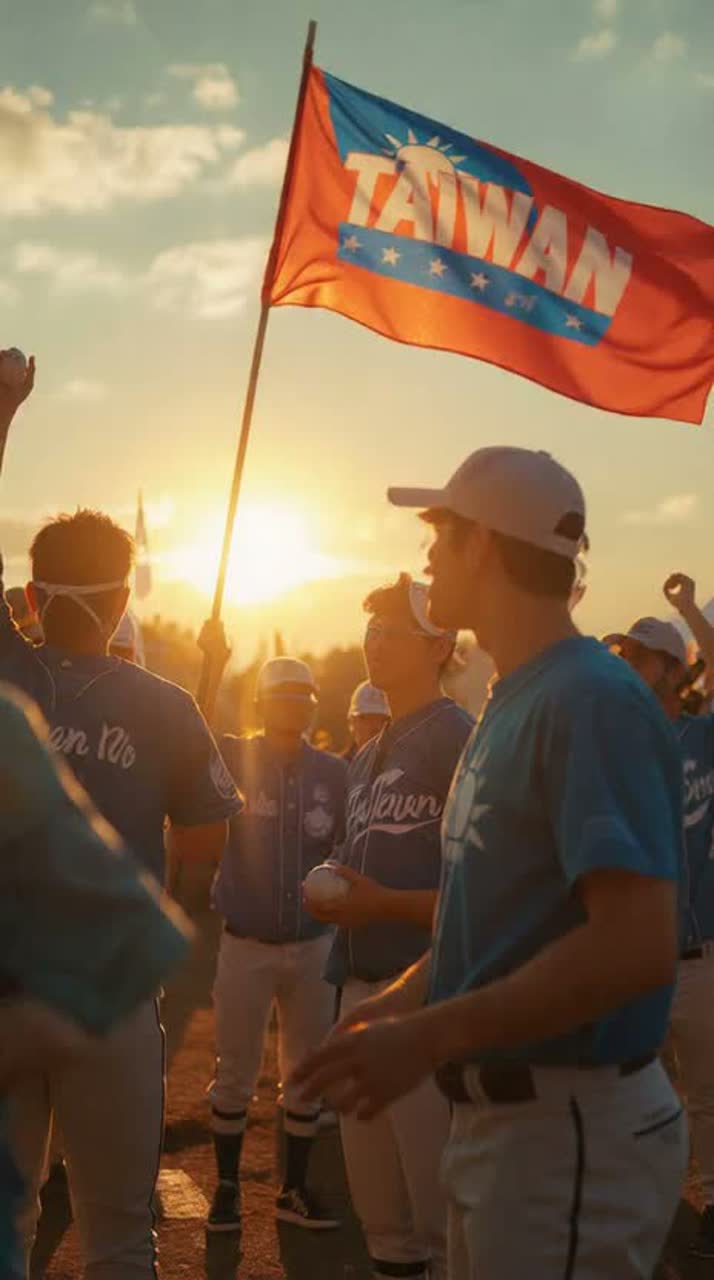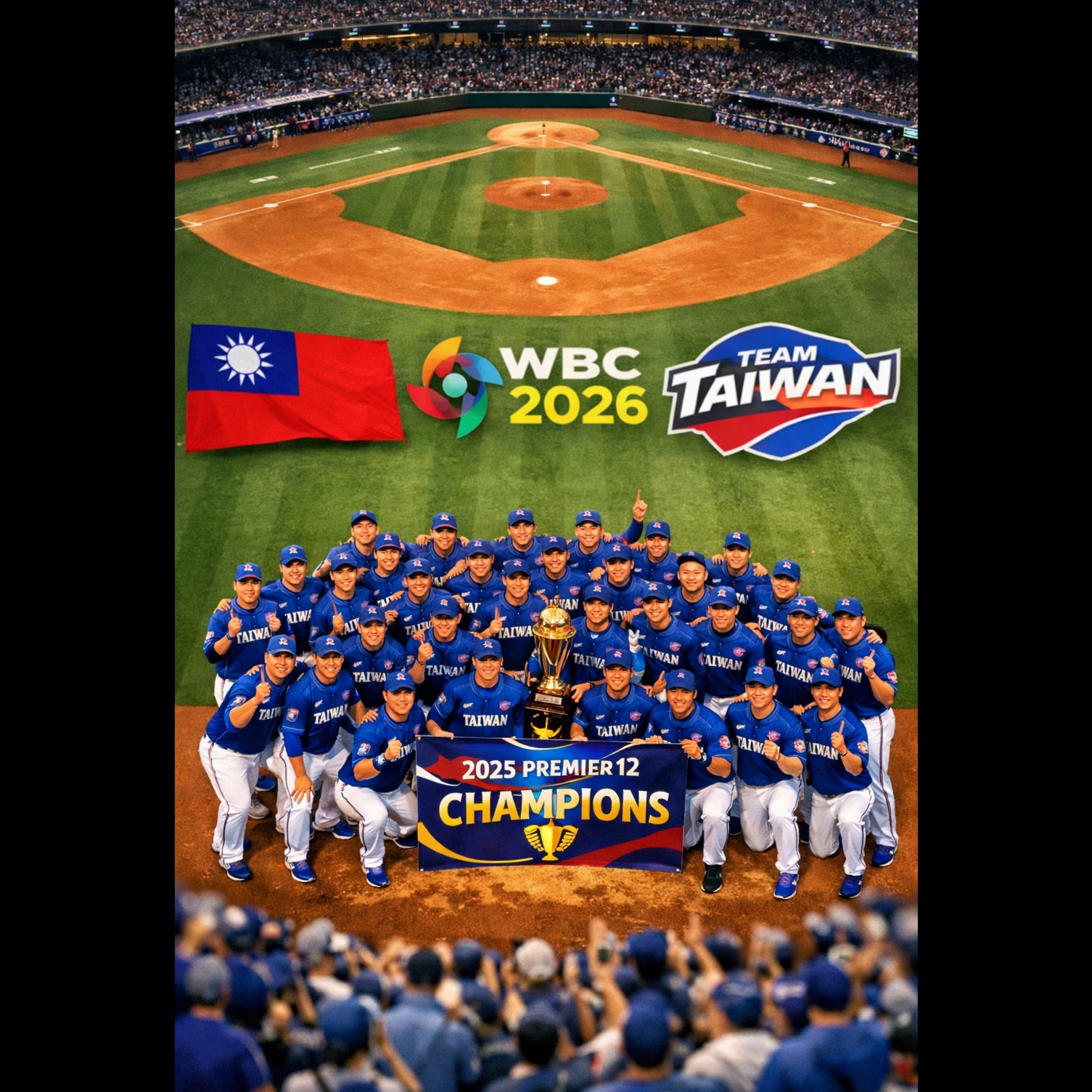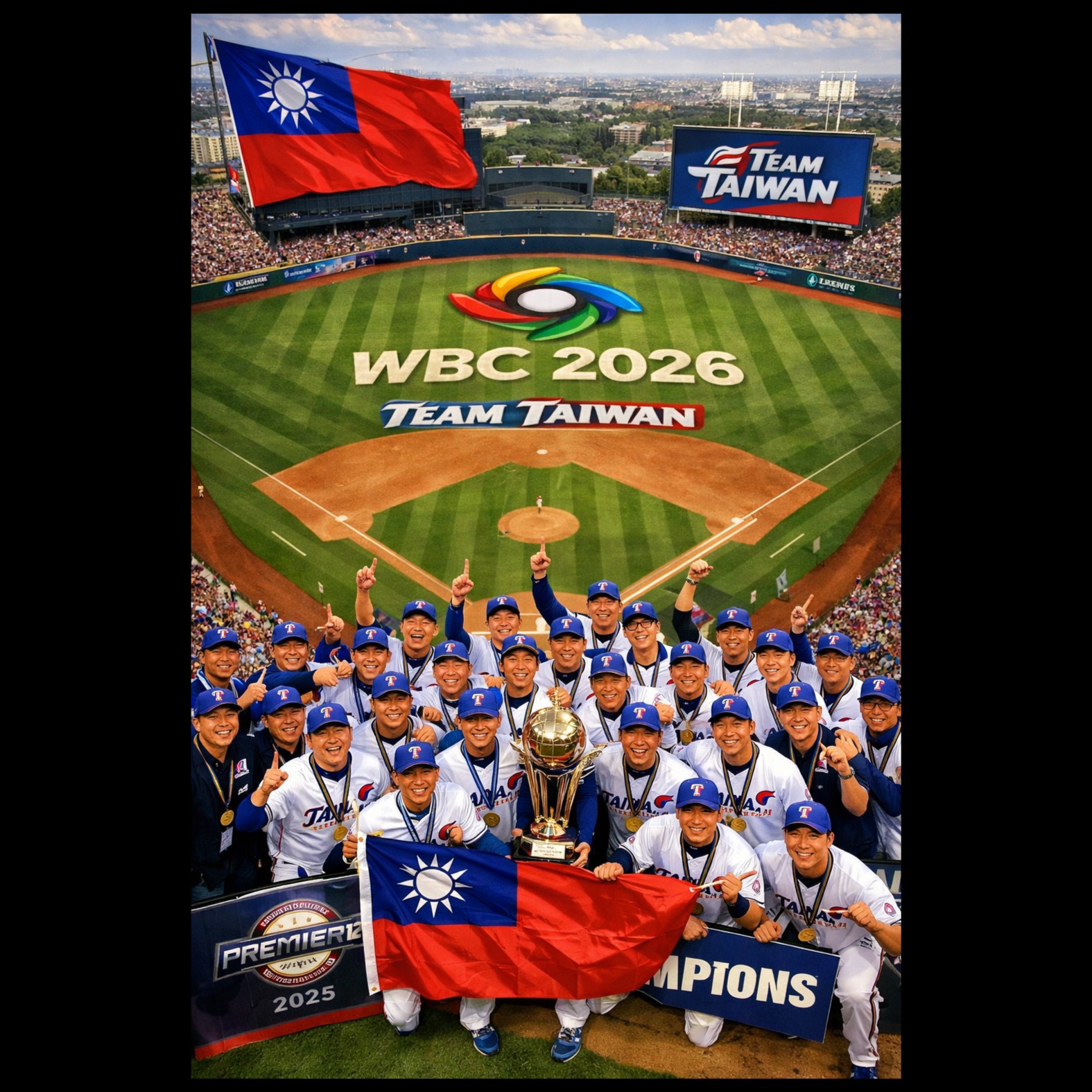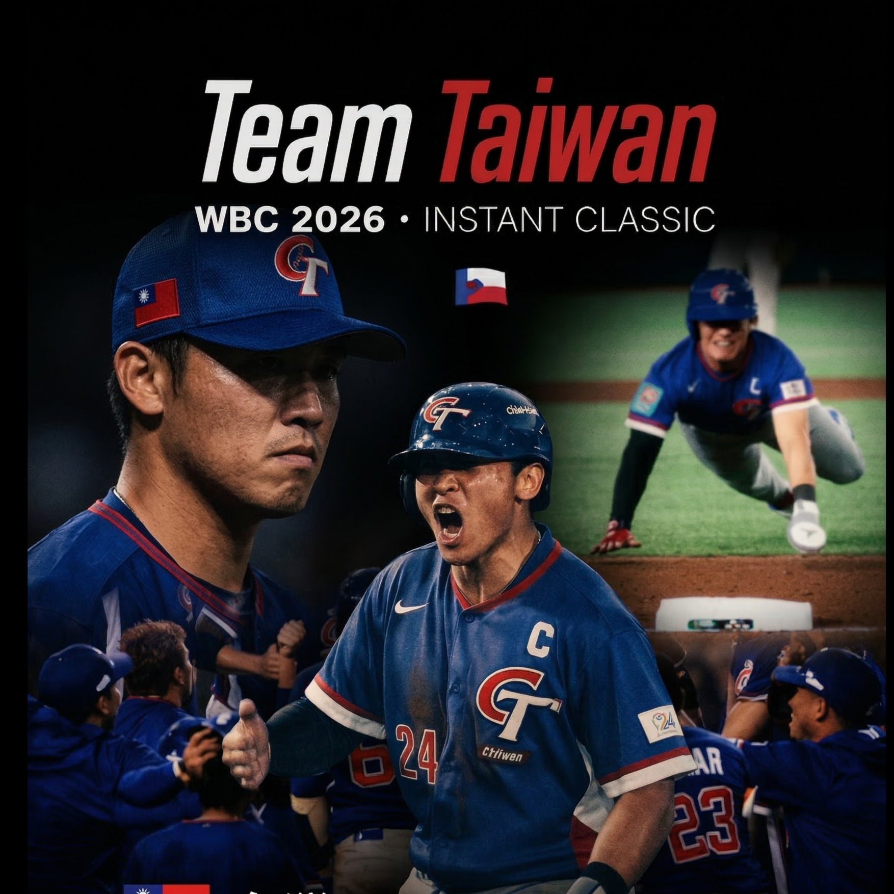A high-octane stadium anthem kicks off at 148 BPM with tight rock drums, mass stomps, synchronized claps, and roaring crowd chants, Heroic brass stabs cut through layers of crunchy guitars, while EDM risers lead to an explosive, festival-size chorus—big gang vocals shout "Team Taiwan!" in bold call-and-response, backed by minimal melodic hooks and percussive handclaps, The arrangement blends K-pop polish with raw Japanese cheer energy, keeping sections uncluttered so fans can easily shout along, ‑piano