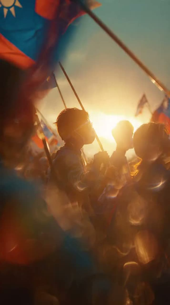A grand march-style national anthem, opening with a bold brass fanfare and robust snare drum cadence, Stately strings fill out the harmony, The choir enters with unified, powerful voices, building in dynamic layers, Midway, a key shift elevates intensity before a triumphant, rallentando finale, Taiwan, Taiwanese, Mandarin