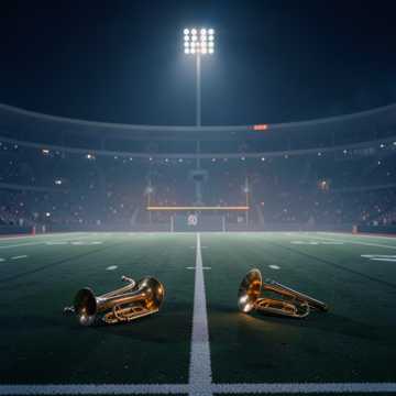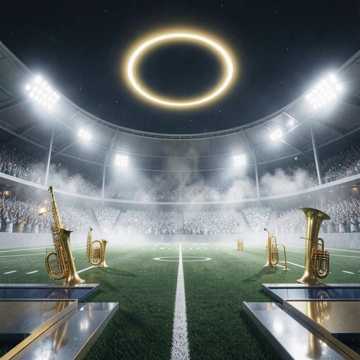 Full-length emotional night-stadium anthem, 92 BPM, luminous and cinematic with a strong live marching-band soul, Let mellophones, trumpets, and warm trombone support carry the melodic emotion, with drumline used more gently as a heartbeat than a flex, Add soft bass drums, restrained snare pulse, shimmering cymbal swells, crowd ambience, subtle sub bass, and atmospheric synth glow, but keep the feeling rooted in a real halftime field at night, Female lead should sound clear, warm, reflective, and slightly awed, with a memorable chorus and room for brass-led instrumental lift between vocal sections, The track should feel like lights over the field, cool air, shared memory, and motion turning into something almost sacred, Full song structure with intro, verse, pre-chorus, chorus, second verse, instrumental lift, bridge, final chorus, and outro