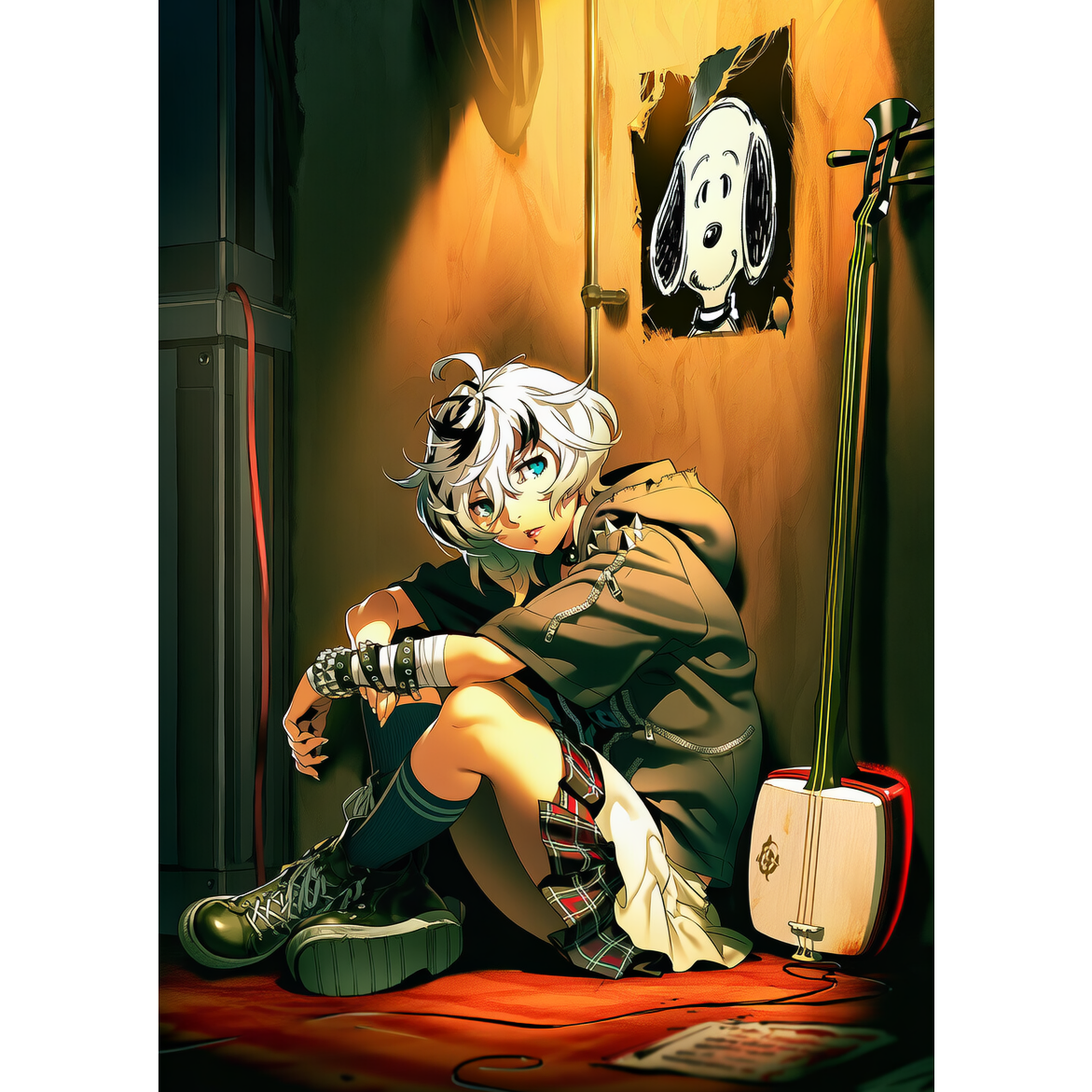 [Style of Music: Playful Slacker Rock, Dark and sensual trip-hop, slow and heavy breakbeats, deep undulating bassline, distorted bass, heavy heartbeat-like drums, dissonant guitar, wall of sound, dissonant harmonies, creating a mysterious and playful atmosphere, ethereal synth pads, Jp kawaii female whisper and sluggish vocals, The vocals come from a loudspeaker rather than a microphone, ]