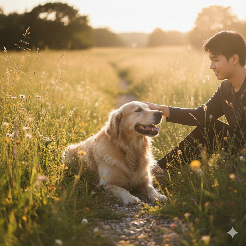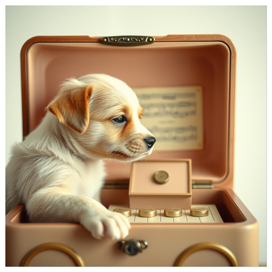 A heartwarming and cute indie-rock song sung entirely with realistic dog barks (“wan” vocals), Expressive and melodic “wan wan wan” singing by a cute puppy — emotional, rhythmic, and musical, Warm indie-rock sound with slightly overdriven electric guitars using bridge mute (palm mute picking), Add delay and reverb for dreamy space and depth, Include gentle bass, soft snare, and atmospheric pads for warmth, The tone should be dreamy, cozy, and slightly melancholic but uplifting, Tempo: around 95 BPM, Mix the “wan” vocal clearly as the lead, surrounded by spatial guitars and ambient textures, Mood: cute × emotional × loyal × indie-rock energy, Use realistic small dog barks tuned melodically for the “wan” vocals — like a puppy singing with feeling