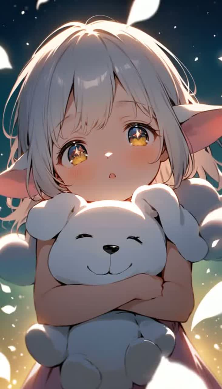 Dreamy chamber-pop and baroque-pop textures with delicate harpsichord, shimmering strings, music-box sparkle, and soft breathy whispers, Playful, fragile, kitten-like sweetness at first — tender, shy, glowing like moonlight, Then the chorus erupts: epic cinematic rock energy, soaring falsetto, bold vocal leaps, powerful harmony layers, triumphant strings and emotional guitar rising like wings, A tiny heart bursts into heroic devotion — cute innocence transforming into unstoppable love and brave anthem spirit, Japanese