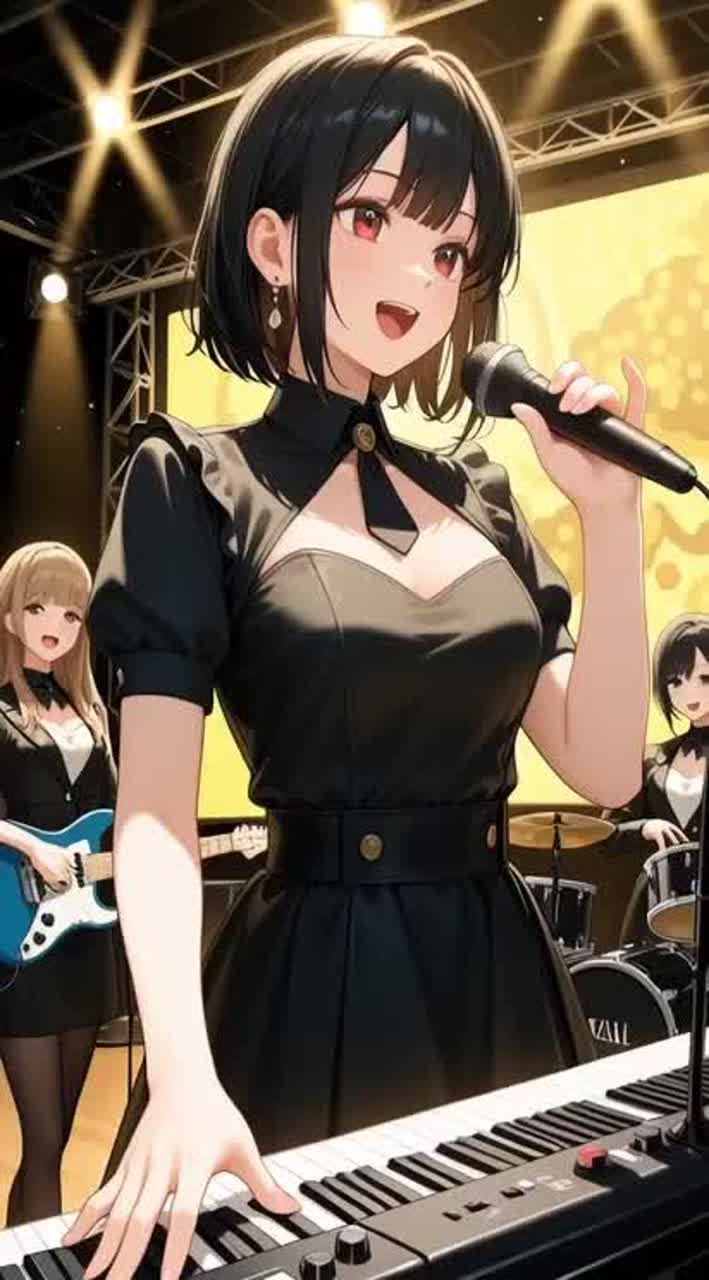 Amid the chaos, a female idol group emerges, singing a tender ballad filled with emotional harmonies and soft, heartfelt voices, The distortion fades into warm idol-pop melodies, blending innocence and intensity in a moving contrast, 🎧 Genre Concept: