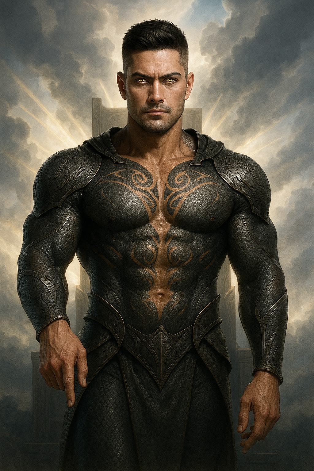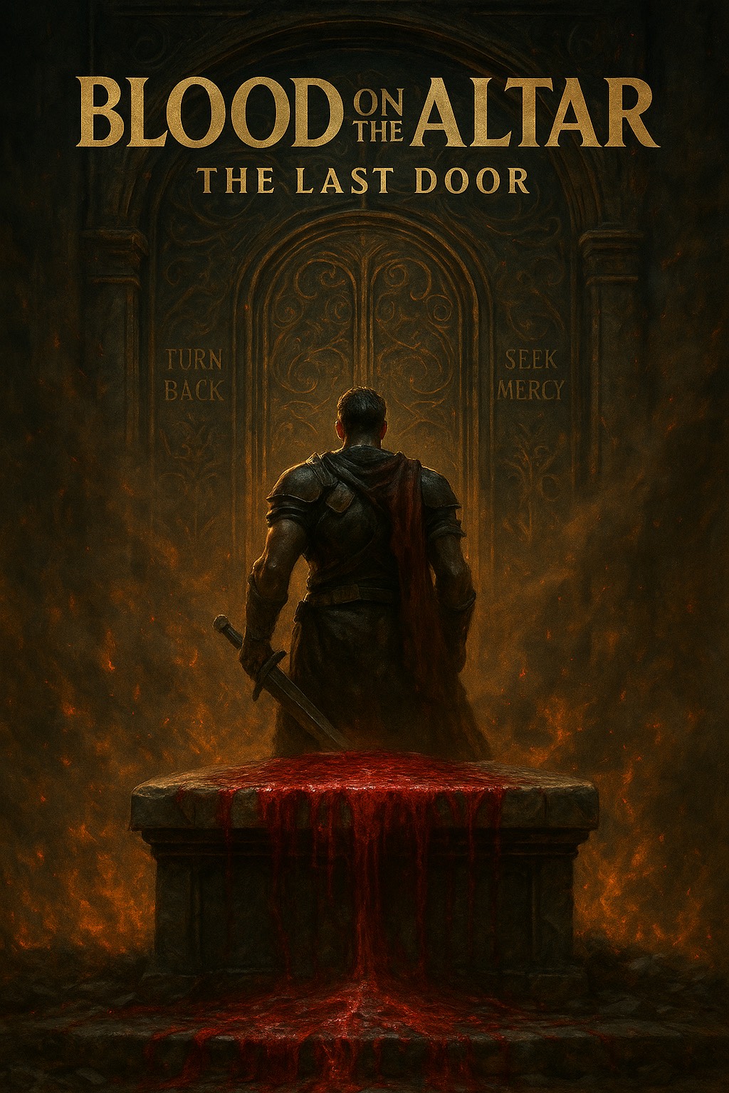 Create a spiritually heavy, cinematic dark trap song blending phonk, gospel soul, ambient orchestral, and modern rap-style cadence, Start with a glitchy bell toll or reversed ambient swell, then drop into strong 808s, smooth gospel chords, and haunting vocal layers, Use minimalistic phrasing, deep vocals, and hypnotic melodies, The song tells the emotional story of soldiers reaching a holy throne after a war they thought was just, Include heavy drum patterns, choral echoes, distorted synths, and clean transitions between somber reflection and militant chanting, Keep the pacing tight with powerful groove and spiritual weight, Tags: #darkgospel #trapphonk #epiccinematic #spiritualanthem #modernflow #hypnoticgroove #apocalyptictruth #thelastdoor #bloodonthealtar #bossfightenergy