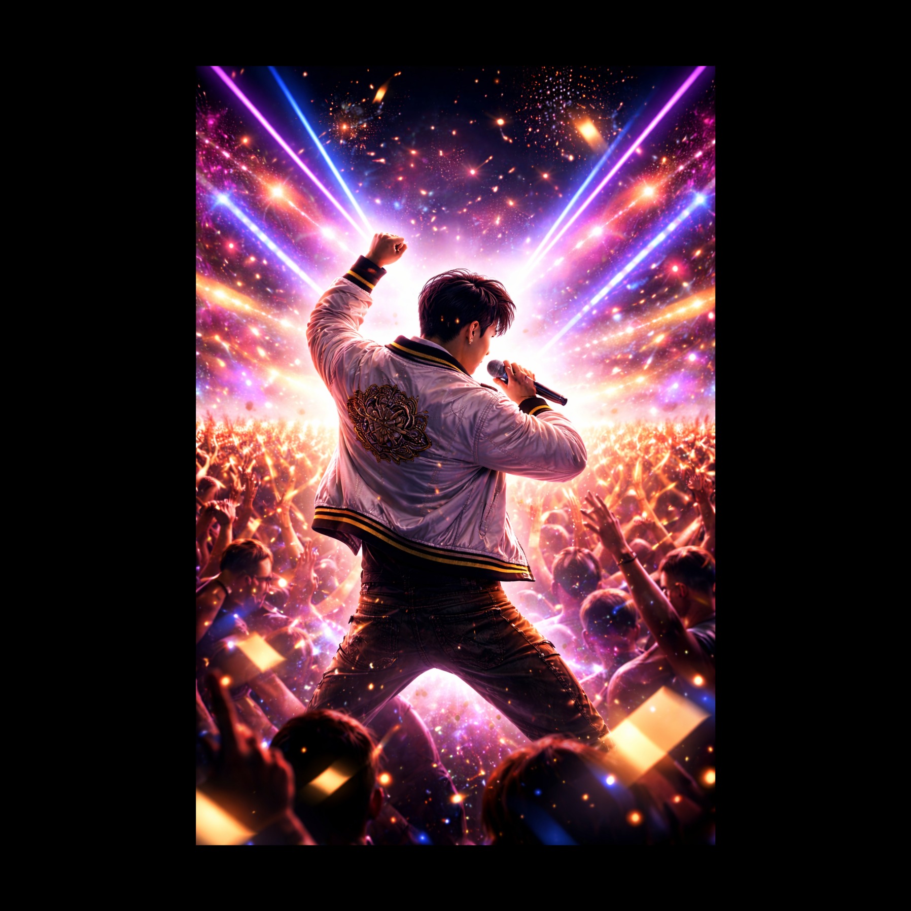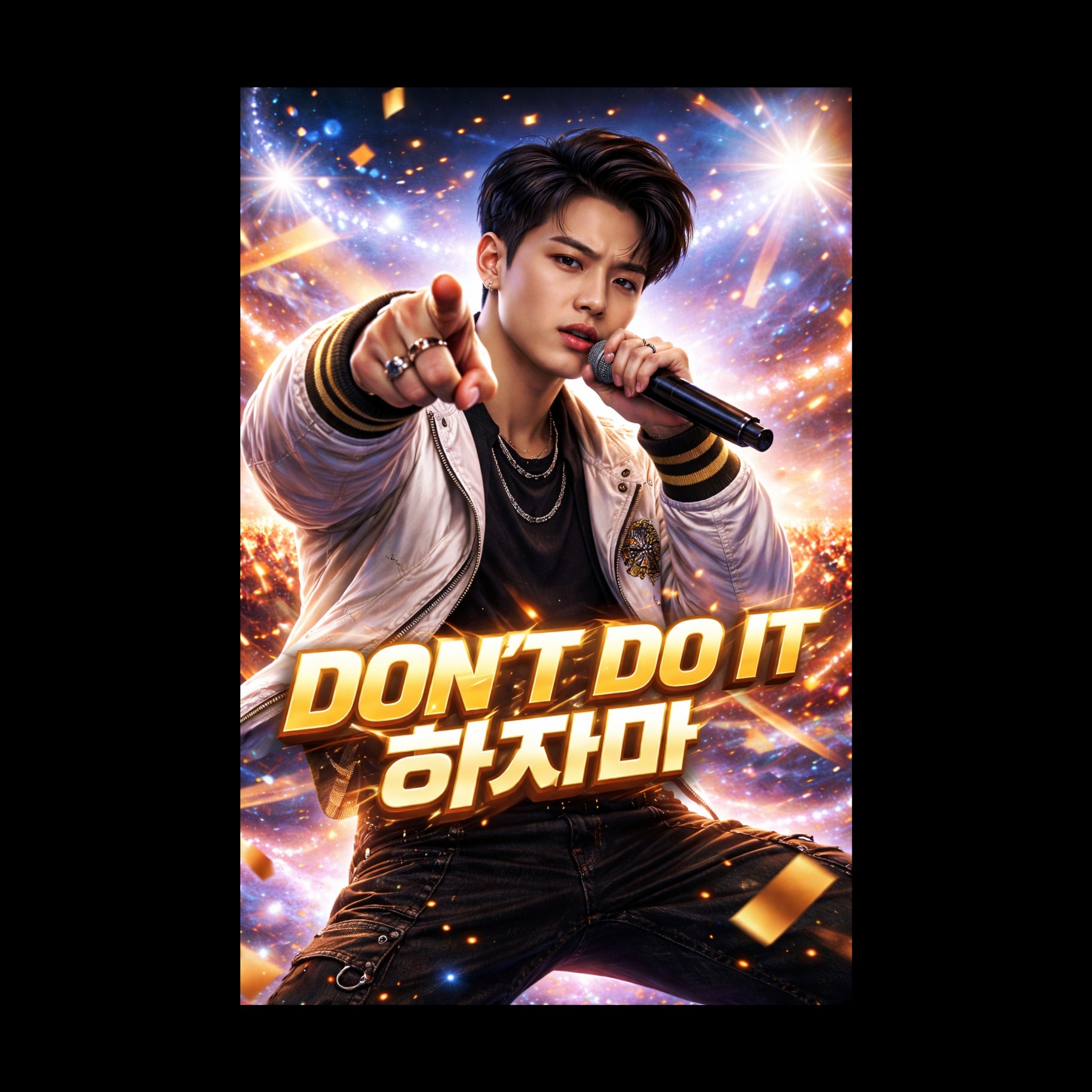 Upbeat high-energy K-pop anthem with glossy polished production, bright synth leads, punchy dance drums, clean groovy bassline, uplifting chord progression, Charismatic bilingual male rap verses (English and Korean), rhythmic and confident flow, Extremely catchy melodic chorus with layered harmonies and chant-style backing vocals, Add call-and-response hook, addictive repetitive phrase, Dynamic build-ups, pre-chorus lift, explosive final chorus with extra ad-libs, Bright, celebratory, confident energy, Performance-ready, choreography vibe, radio-ready clean mix