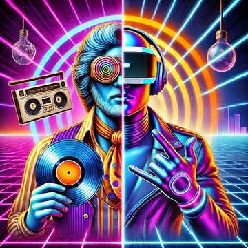 Funky disco rock blending nostalgia and irony, with sax solos, catchy chorus, and layered harmonies about time, 36520