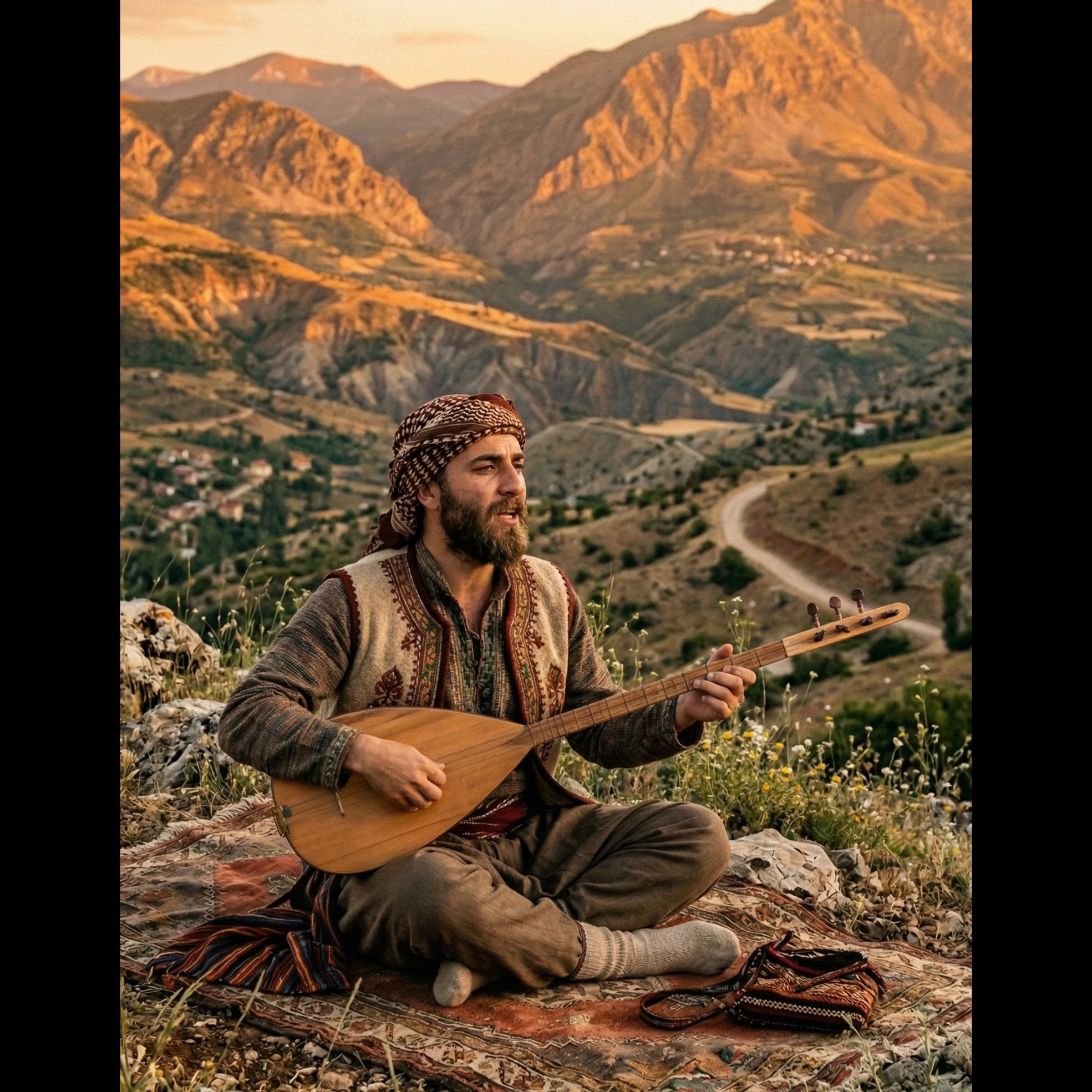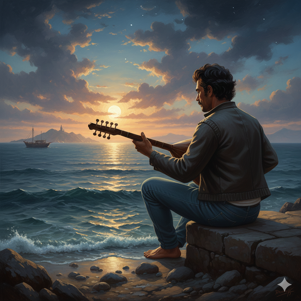 Vocal Style: Male voice, soft, deep, emotional and expressive; calm but with poetic intensity, Minimal vibrato, A voice that feels like it's speaking from within, Reference tone: Erkan Oğur, Sufi/Alevi folk style