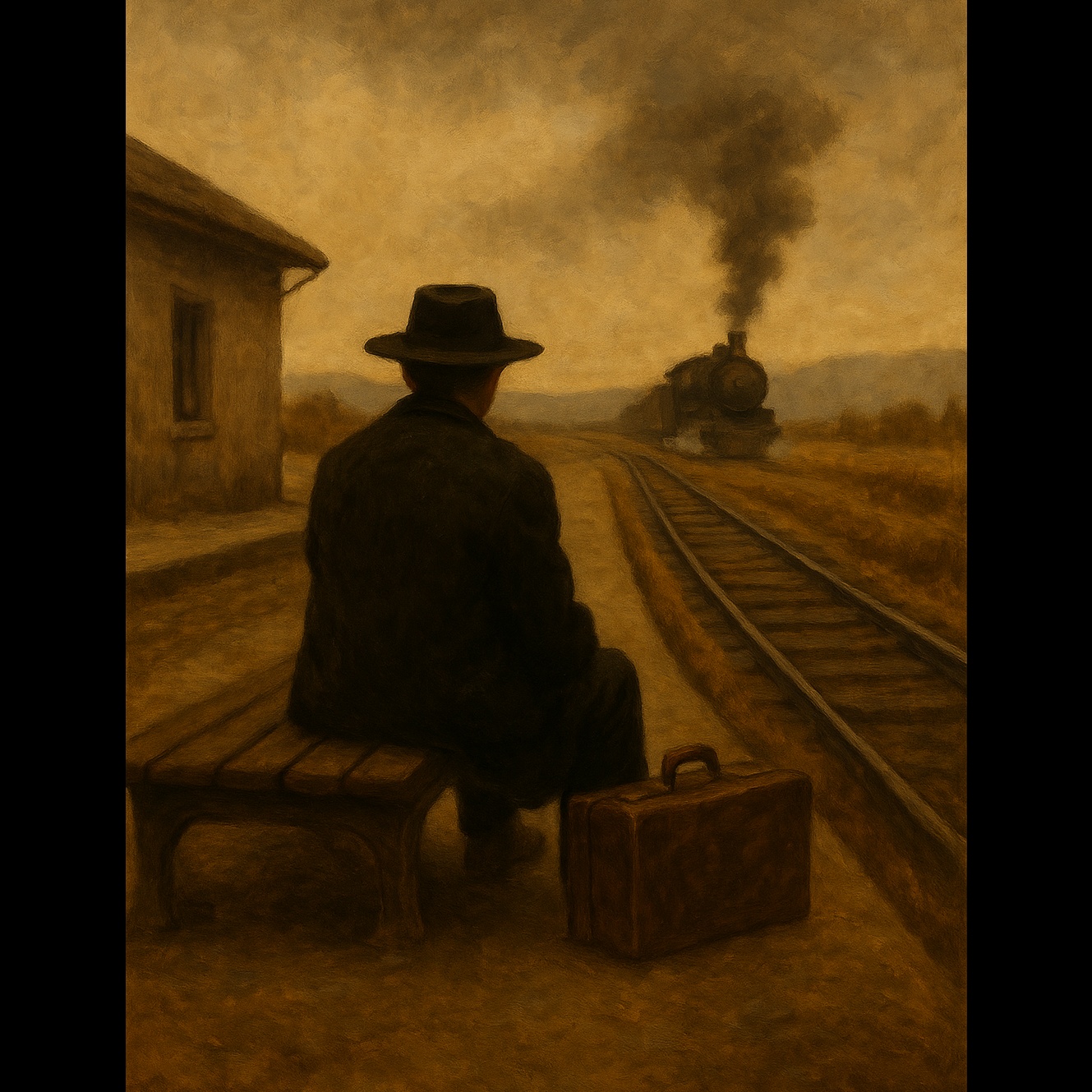 Deeply emotional Turkish arabesk ballad in the style of Ferdi Tayfur, Male solo vocal, warm, sorrowful, full of vibrato and raw passion, carrying pain and longing in every phrase, Singing is heartfelt, dramatic, and nostalgic, with clear Turkish arabesk pronunciation and ornamented phrasing, Instrumentation: bağlama (saz) arpeggios and tremolos, Turkish strings ensemble (violins, violas, cellos) playing melancholic lines, clarinet for soulful ornamentation, kanun and oud for texture, darbuka and soft frame drum for subtle rhythm, Tempo slow–moderate (70–80 BPM), in minor/Hicaz mode, with dramatic dynamic swells, Arrangement cinematic but intimate, evoking 1980s–1990s classic arabesk sound, with emotional instrumental interludes and long vocal sustain, Mood: sorrowful, hopeless, nostalgic, yet poetic